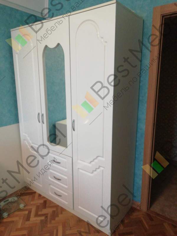 Шкаф 3-х створчатый Гармония BMS по достоинству оценят поклонники легких и светлых классических интерьеров. Выполненная в универсальном белом цвете, модель украшена изящной фрезеровкой и фигурно вырезанным зеркалом. Для аккуратного размещения белья и одежды за распашными дверцами располагаются платяное отделение со штангой и бельевые полки. Практичное дополнение – три выдвижных ящика в центральной части. Купить шкаф 3-х створчатый Гармония BMS вы всегда сможете в нашем интернет-магазине.