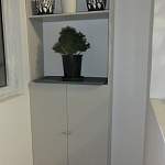 Отличный шкаф, покупали на балкон для цветов и вещей. Сначала хотели белый, но он был с доплатой, рискнули заказать в сером цвете, а он оказался совсем светло-серый и фактура, как у шагрени - супер! От рамок отказались, как здорово, что можно выбирать дизайн! Собрали сами с дочкой, так как опыт имеется, никаких проблем не возникло. Одну полку не стали монтировать, чтобы ёлка поместилась. И оргалит сзади в нише тоже не прибивали, так как был бы виден горизонтальный шов. За дверцами еще 2 полки - получился очень удобный и вместительный шкаф. Спасибо Бесмебель, вы лучшие, как всегда!
