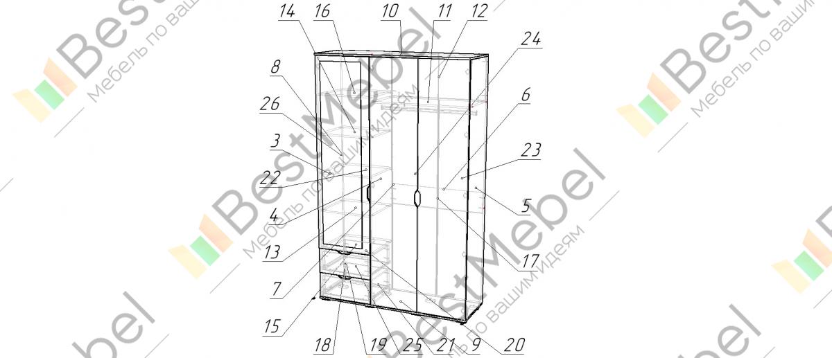 Распашной шкаф Болеро 1 BMS отличается высоким уровнем функциональности за счет трех отделений, в которых вы можете выбрать подходящую комплектацию для грамотной организации пространства вашей комнаты, и двух вместительных выдвижных ящиков. Модель, выполненная в классических древесных тонах, оснащена прямоугольным зеркалом, а надежные металлические опоры придают устойчивость конструкции. Купить распашной шкаф Болеро 1 BMS с возможностью изготовления по индивидуальным размерам вы можете в нашем интернет-магазине.