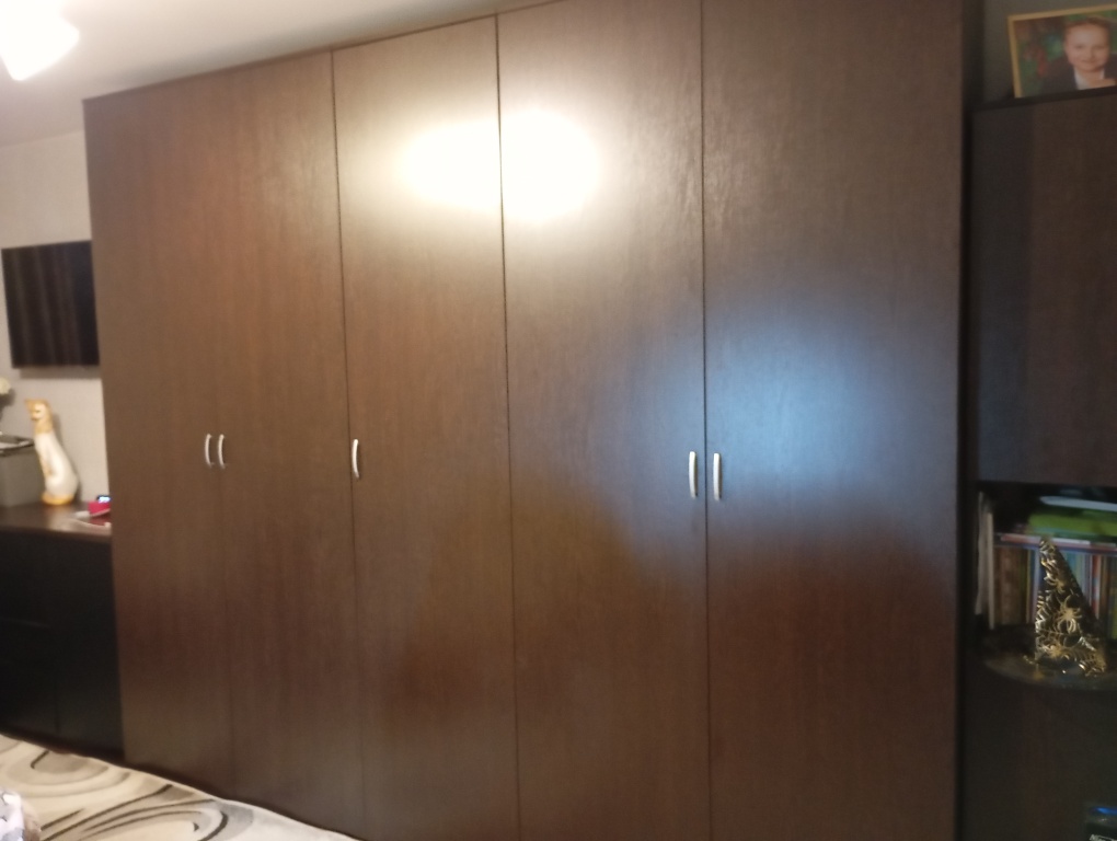 Заказали шкаф на свой страх и риск. Из ЛДСП по своим замерам. Ручки заказывали на меркетплэйсе. В целом довольны, учитывая, что выбрали лдсп. И это при наших размерах более менее адекватная цена. Из минусов: схема сборки не совсем понятная. Деталей много и было сложно понять что куда и к чему крепится и потратили много времени из-за этого. Можно было бы более понятную схему сборки сделать.Из фурнитуры пару единиц отсутствует. Некритично, но хотелось бы чтобы комплектация была полная.Сами двери слегка кривые и это заметно когда вешаешь их на навесы и сложно отрегулировать, так как видны зазоры и неровности из-за кривизны.Так в целом шкаф хороший , советую 👍