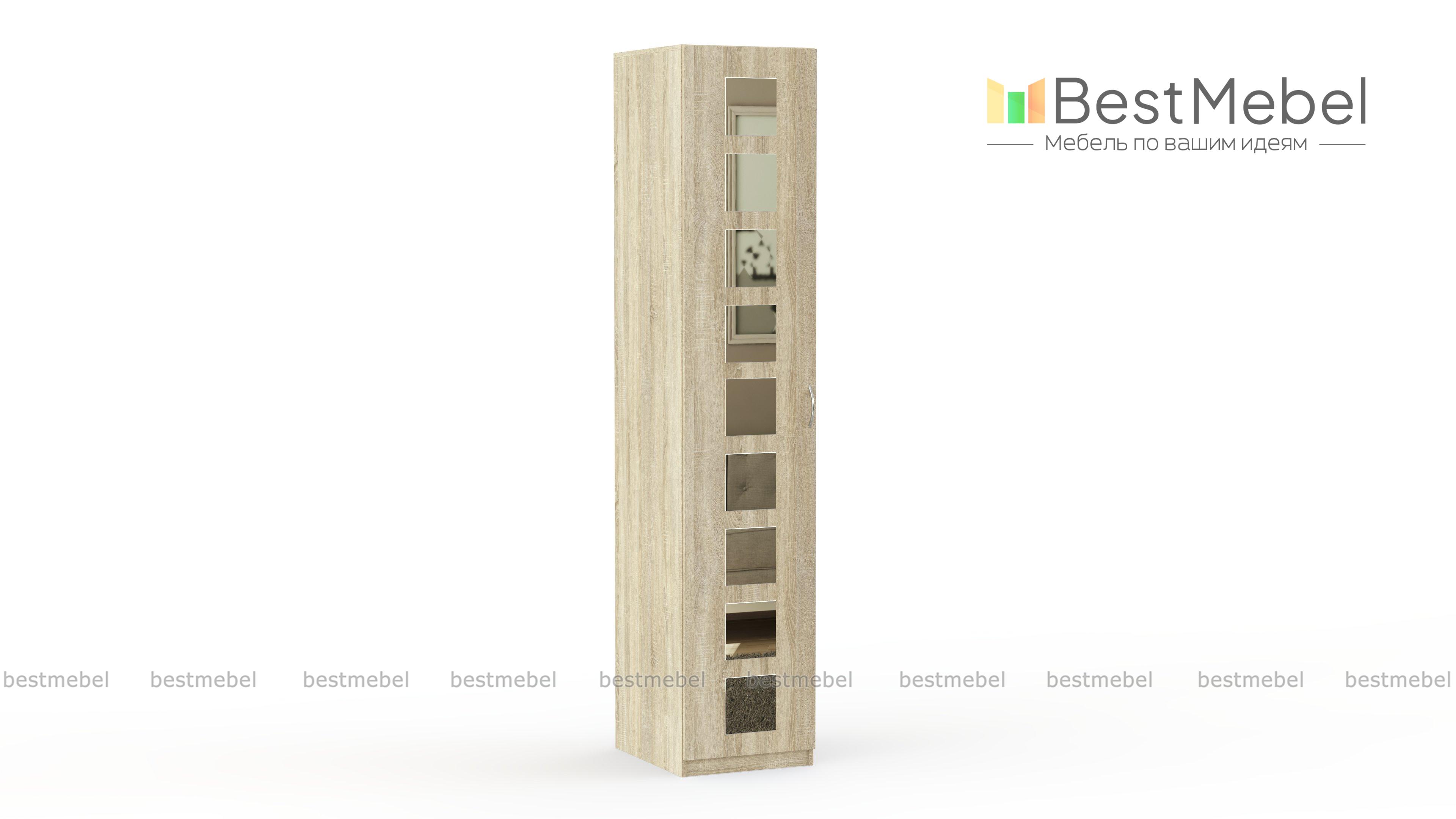 Требовался узкий шкаф-пенал, чтобы вписался в уже готовый гарнитур на новом месте жительства. Вышло то, что надо. А чтобы шкафчик не выглядел скучно, выбрали модель с декоративными зеркалами.