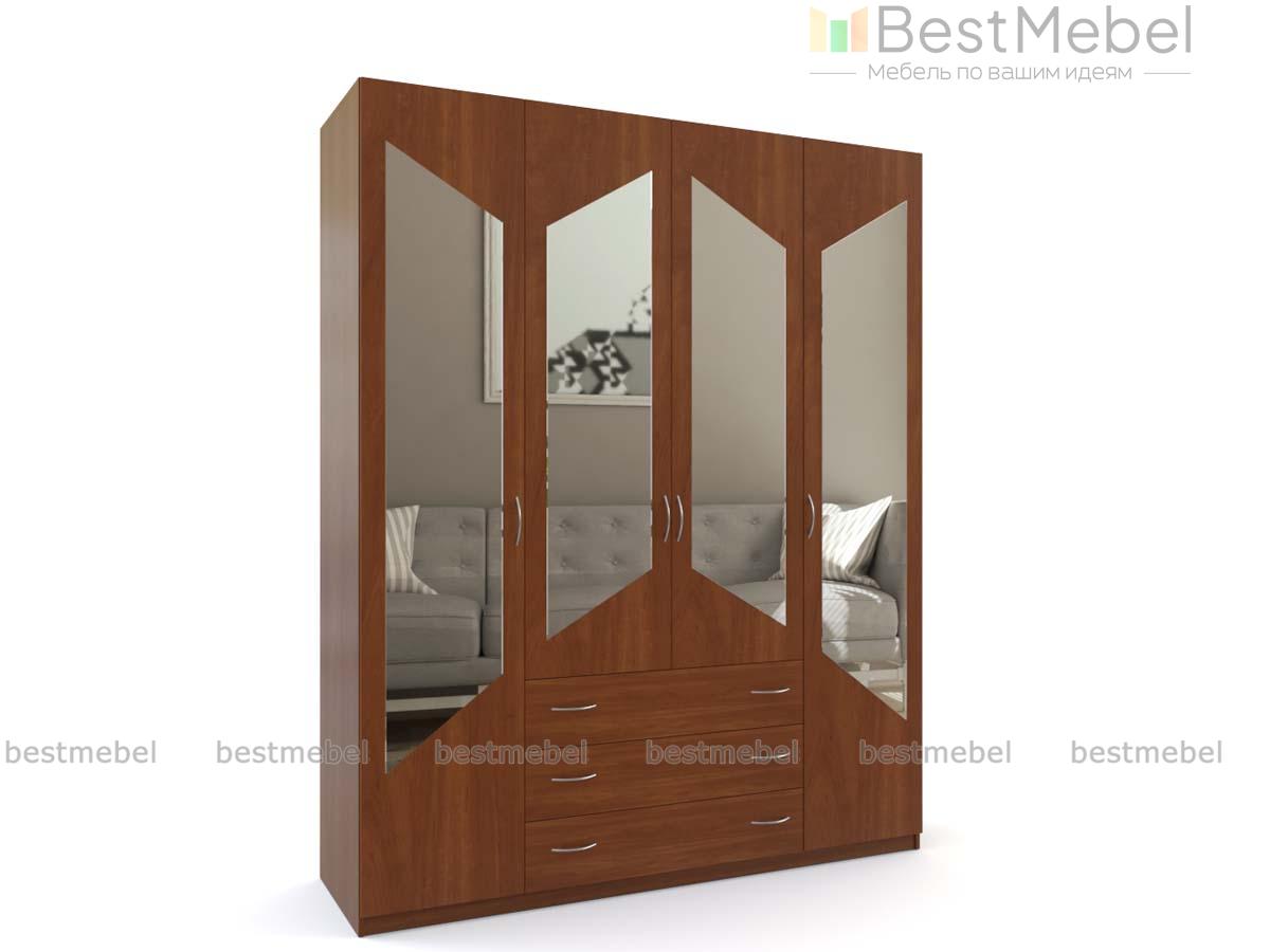 Распашной шкаф Паулина 40.2 BMS сможет не только компактно разместить большое количество вещей, но и визуально расширит границы комнаты. Четырехдверная комбинированная модель оборудована платяным отделением и двумя бельевыми, а также тремя широкими выдвижными ящиками. Эффектным интерьерным решением станет фасад шкафа, декорированный геометричными зеркальными накладками. Купить распашной шкаф Паулина 40.2 BMS приглашаем в наш интернет-магазин по выгодной цене.