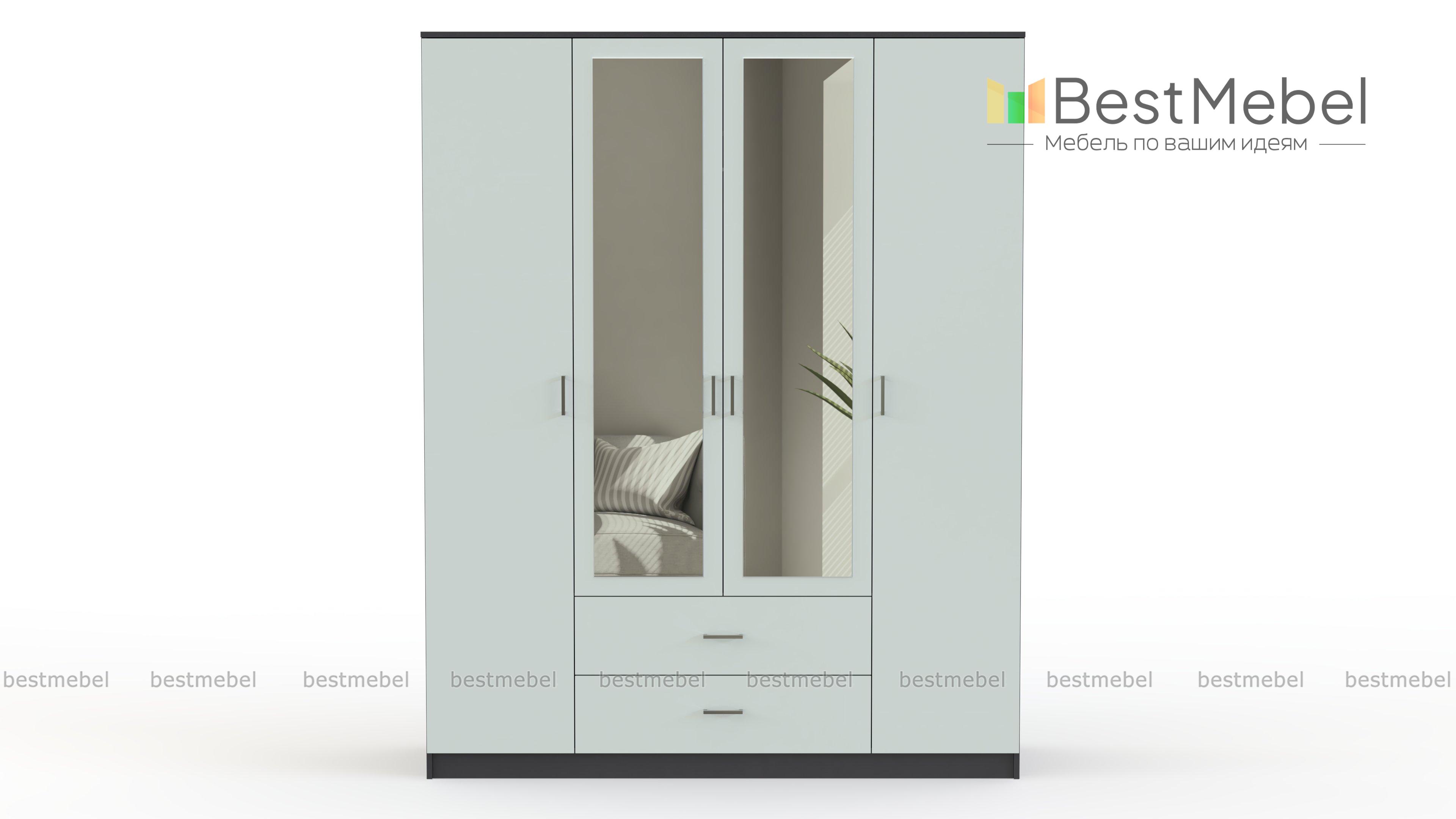 Шкаф 4.2. Шатурский BMS сочетает в себе современную лаконичность и функциональность. На фоне темного корпуса эффектно выделяется светлый фасад, центральные дверцы дополнены незаменимыми в интерьере спальни или прихожей зеркалами. Четырехдверная модель оборудована платяным отделением, бельевыми полками и двумя выдвижными ящиками для аксессуаров или мелкого трикотажа. Купить шкаф 4.2. Шатурский BMS вы сможете в нашем интернет-магазине, подобрав размеры, цвет и фурнитуру.