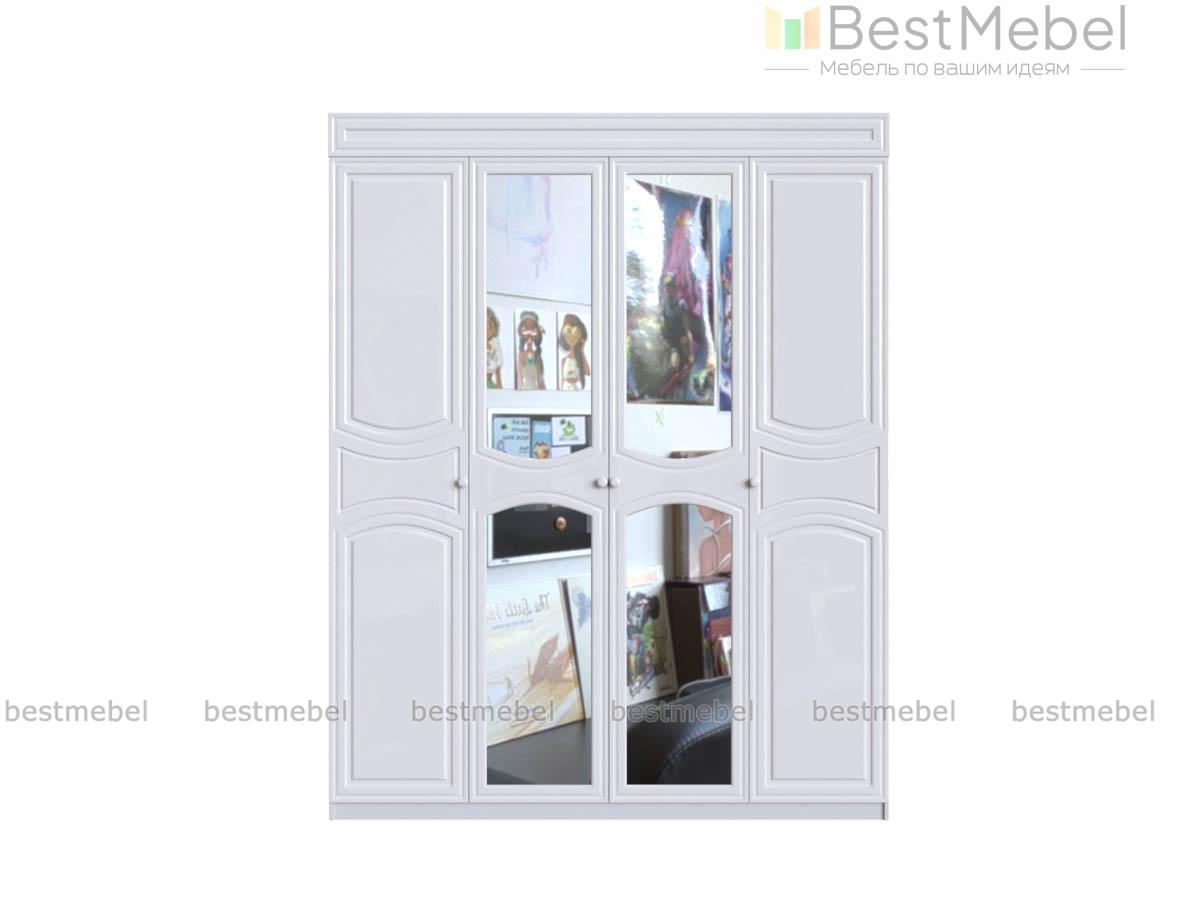 Шкаф 4-х створчатый Шарлота BMS отличает редкая вместительность, но при этом визуальная легкость благодаря белоснежным фасадам с зеркальными вставками. Украшенная фрезерованным рисунком, модель станет настоящим украшением интерьера спальни или гардеробной. Разместить одежду, обувь, аксессуары и многое другое помогут просторное платяное и два бельевых отделения с полками. Качественные материалы и фурнитура станут залогом долговечности и эстетичного вида. Купить шкаф 4-х створчатый Шарлота BMS по лучшей цене приглашаем в наш интернет-магазин.