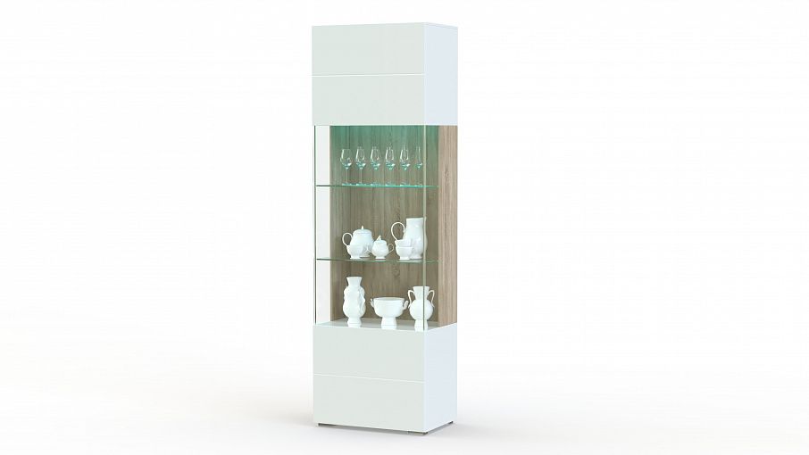Шкаф-пенал Лето 1 BMS – элегантная минималистичная модель, в которой белоснежный фрезерованный глянец сочетается с натуральными оттенками под древесный массив. За распашной дверцей с витриной в центральной части располагаются стандартные полки для хранения разнообразных бытовых вещей и стеклянные с подсветкой – для посуды и предметов декора. Износостойкость материалов станет гарантией простоты ухода и эстетичного внешнего вида. Купить шкаф-пенал Лето 1 BMS для эффектной современной гостиной приглашаем к нам в интернет-магазин.