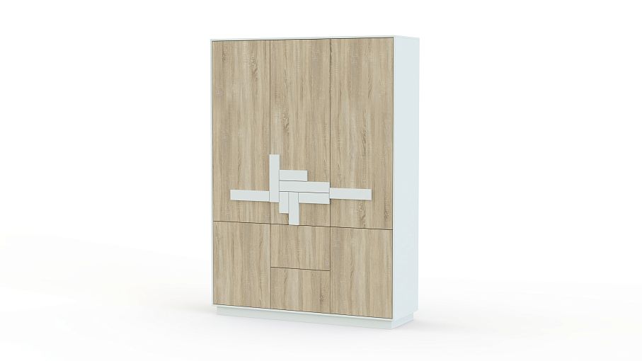 Шкаф распашной Анлер 3.2 BMS выгодно отличается традиционной надежностью конструкции и актуальным дизайном. Трехдверная комбинированная модель оборудована бельевыми полками, штангой, а также двумя выдвижными ящиками, удобными для хранения мелочей. Вместительный и простой в эксплуатации, шкаф выполнен в сочетании универсального белого и оттенков с имитацией фактуры дерева, фасад декорирован контрастными накладками. Купить шкаф распашной Анлер 3.2 BMS для спального интерьера или прихожей приглашаем в наш интернет-магазин.
