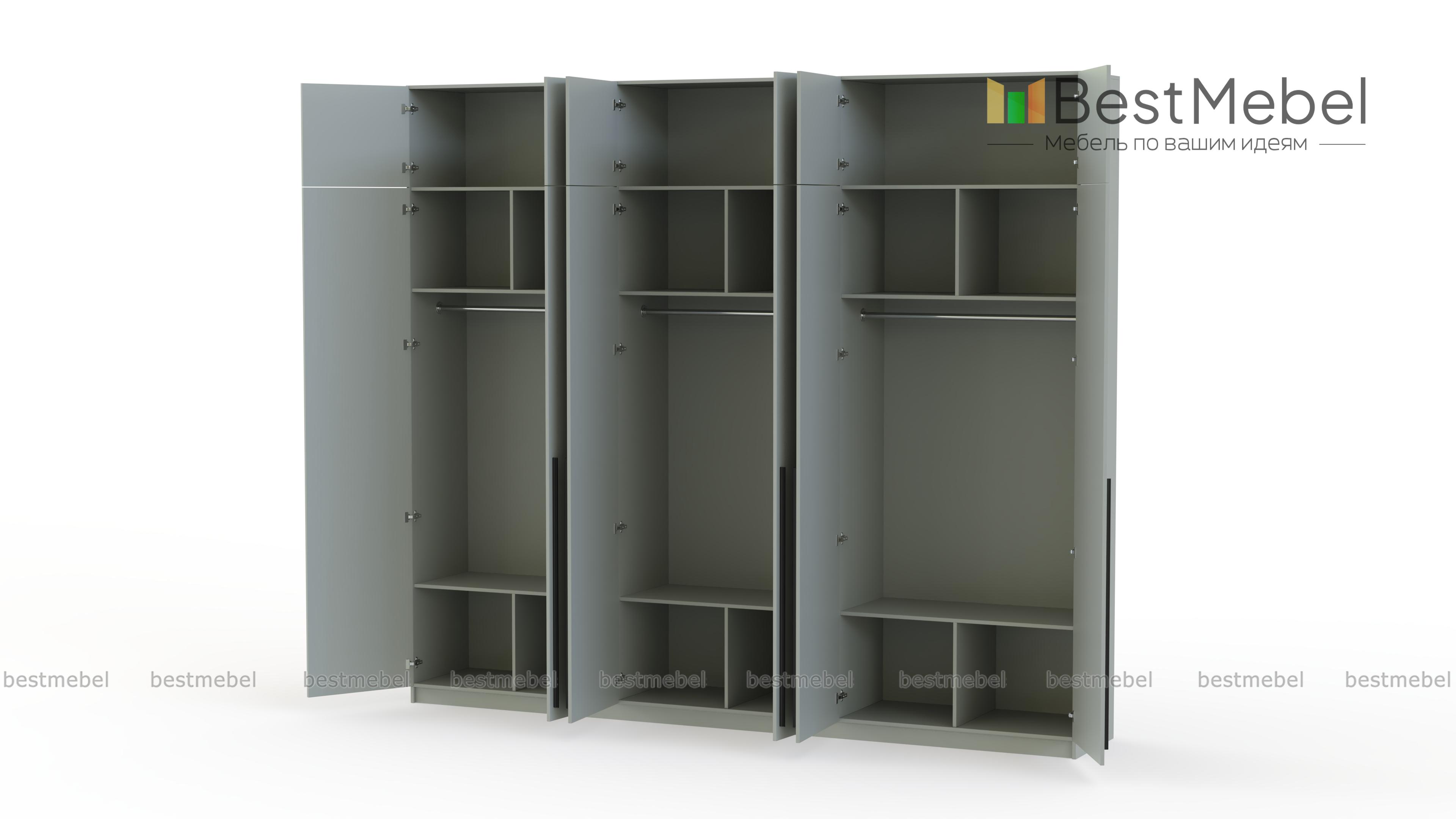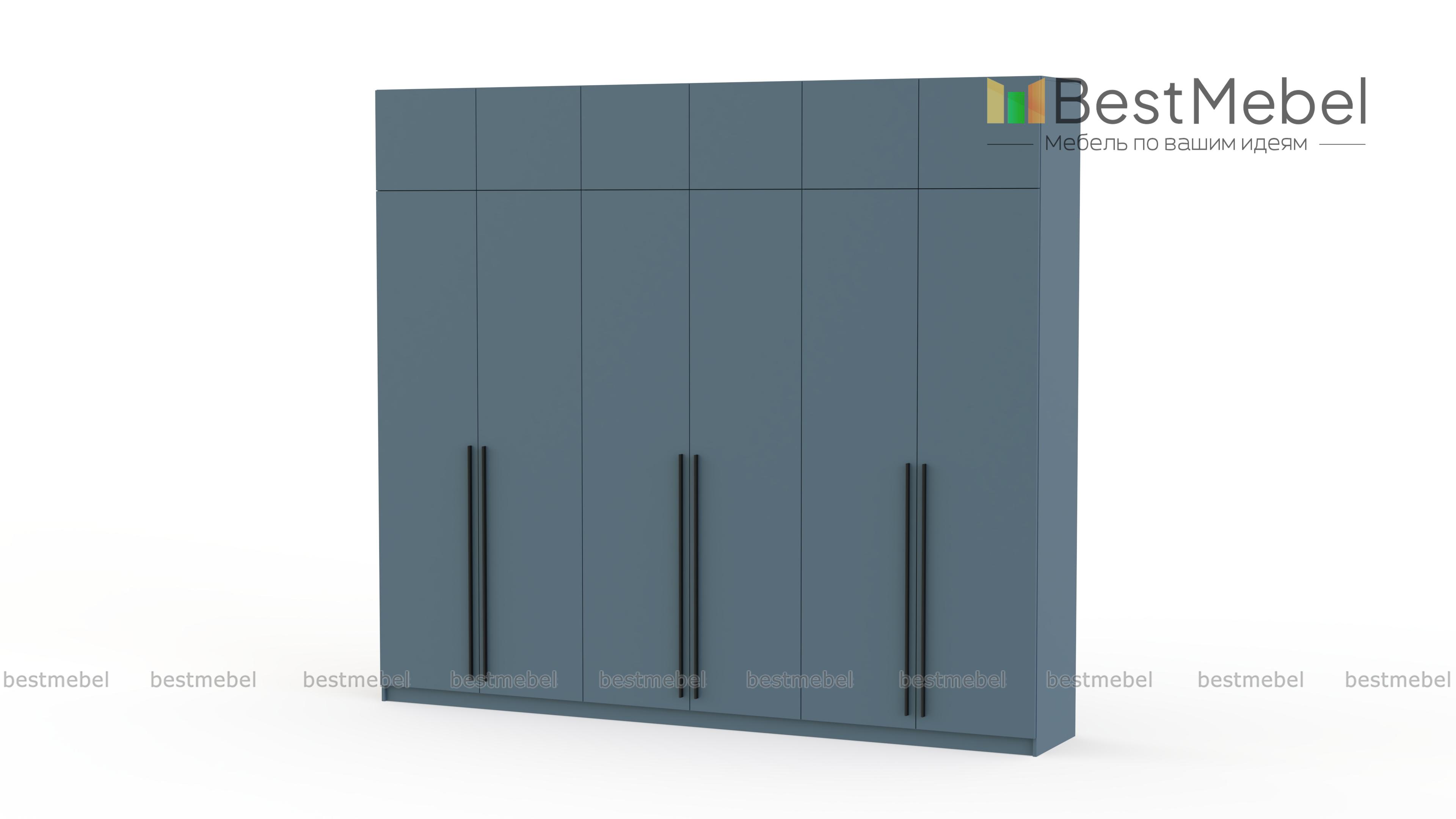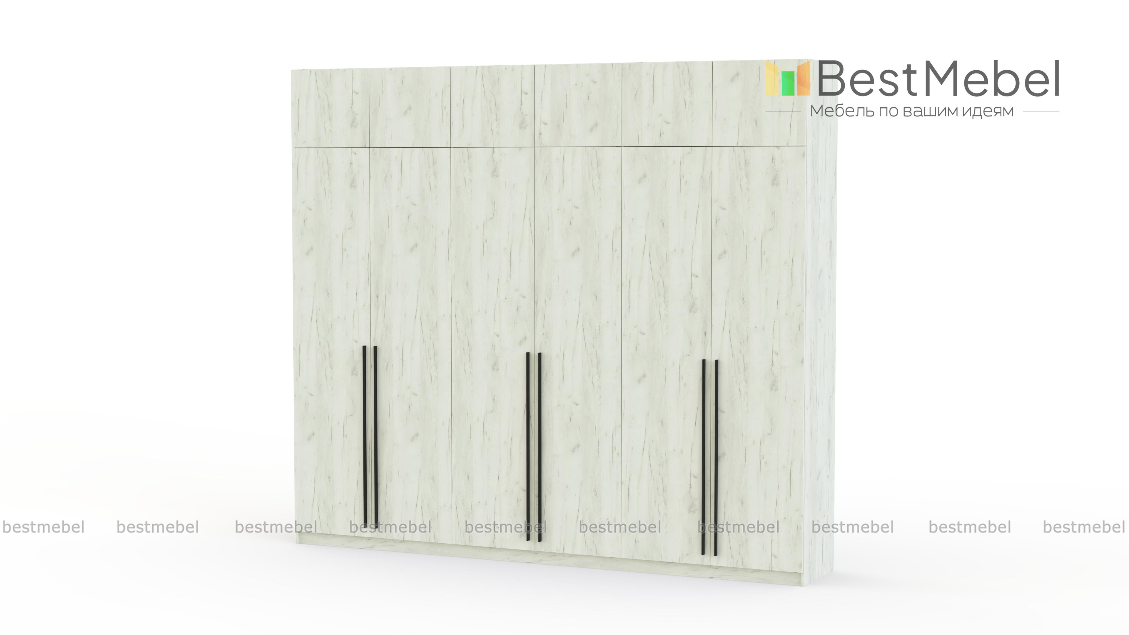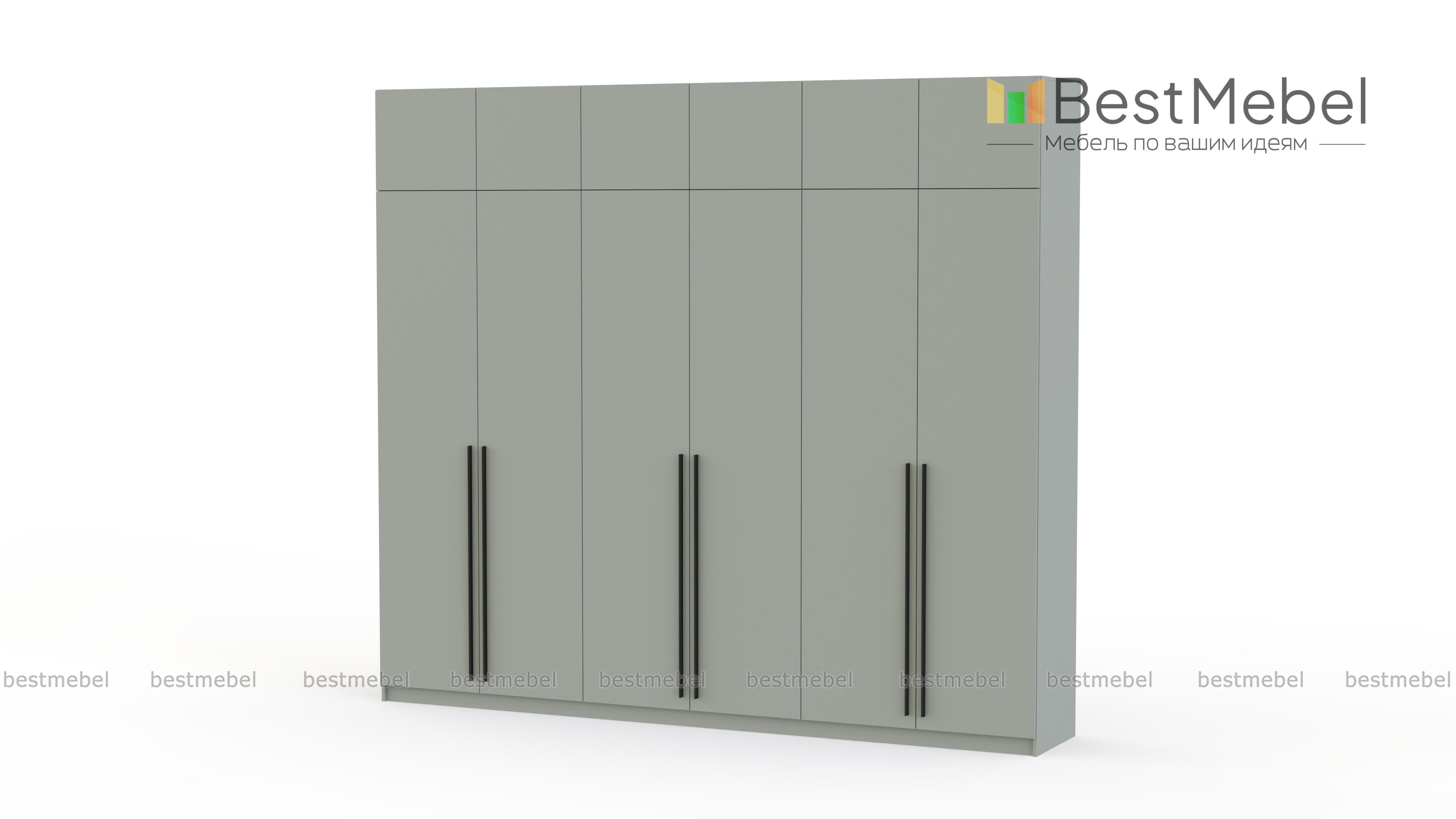 Шкаф распашной Айва 17 BMS легко вместит все необходимое благодаря трем платяным отделениям и антресоли. Шестидверная конструкция отлично вписывается в спальный интерьер и прихожие, где по максимуму задействует пространство для хранения. Элегантный современный дизайн создает сплошной светлый фасад с удлиненными ручками в качестве декора. Купить шкаф распашной Айва 17 BMS приглашаем к нам в интернет-магазин, подобрав нужные размеры, цвет и компоновку.