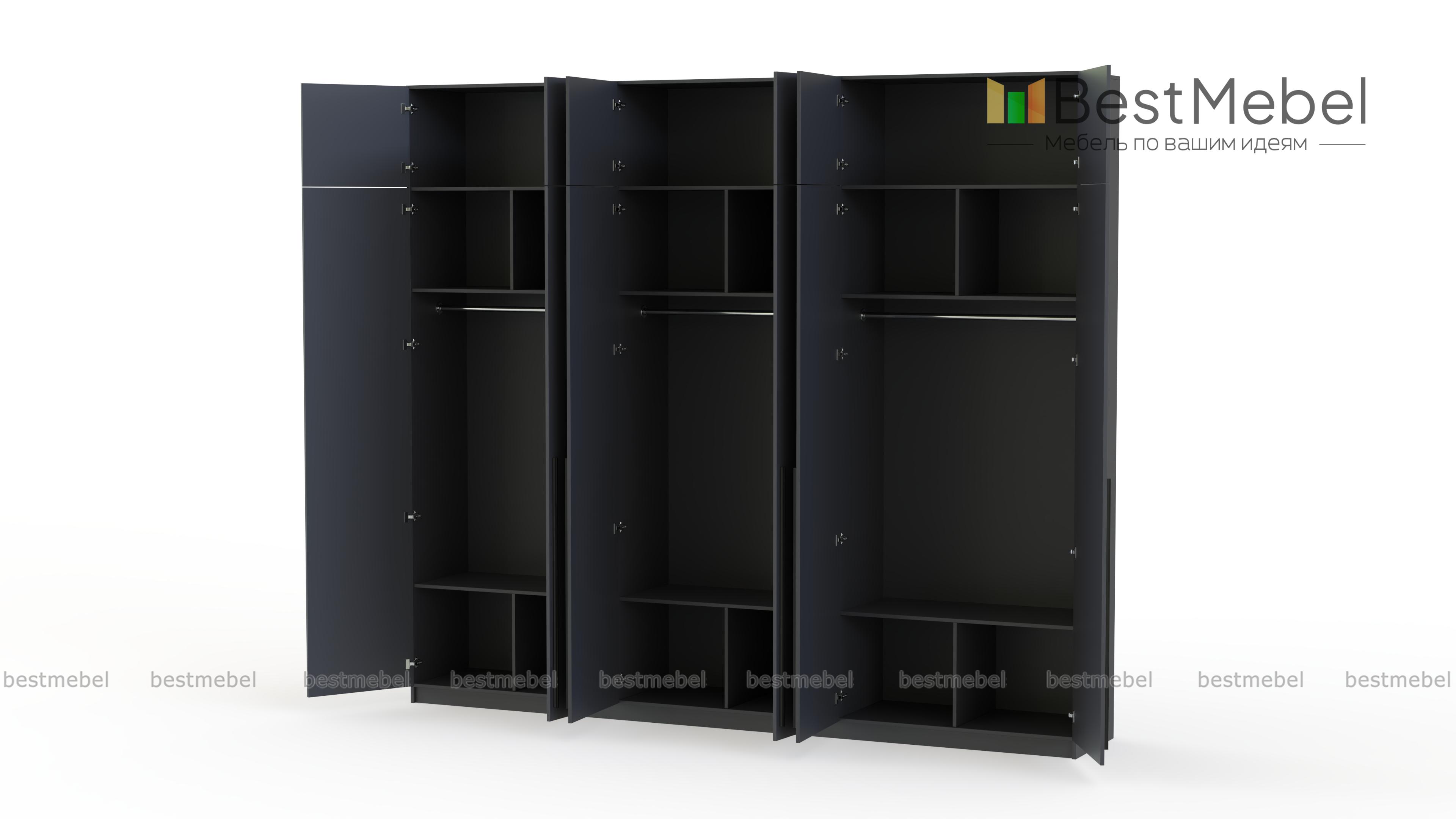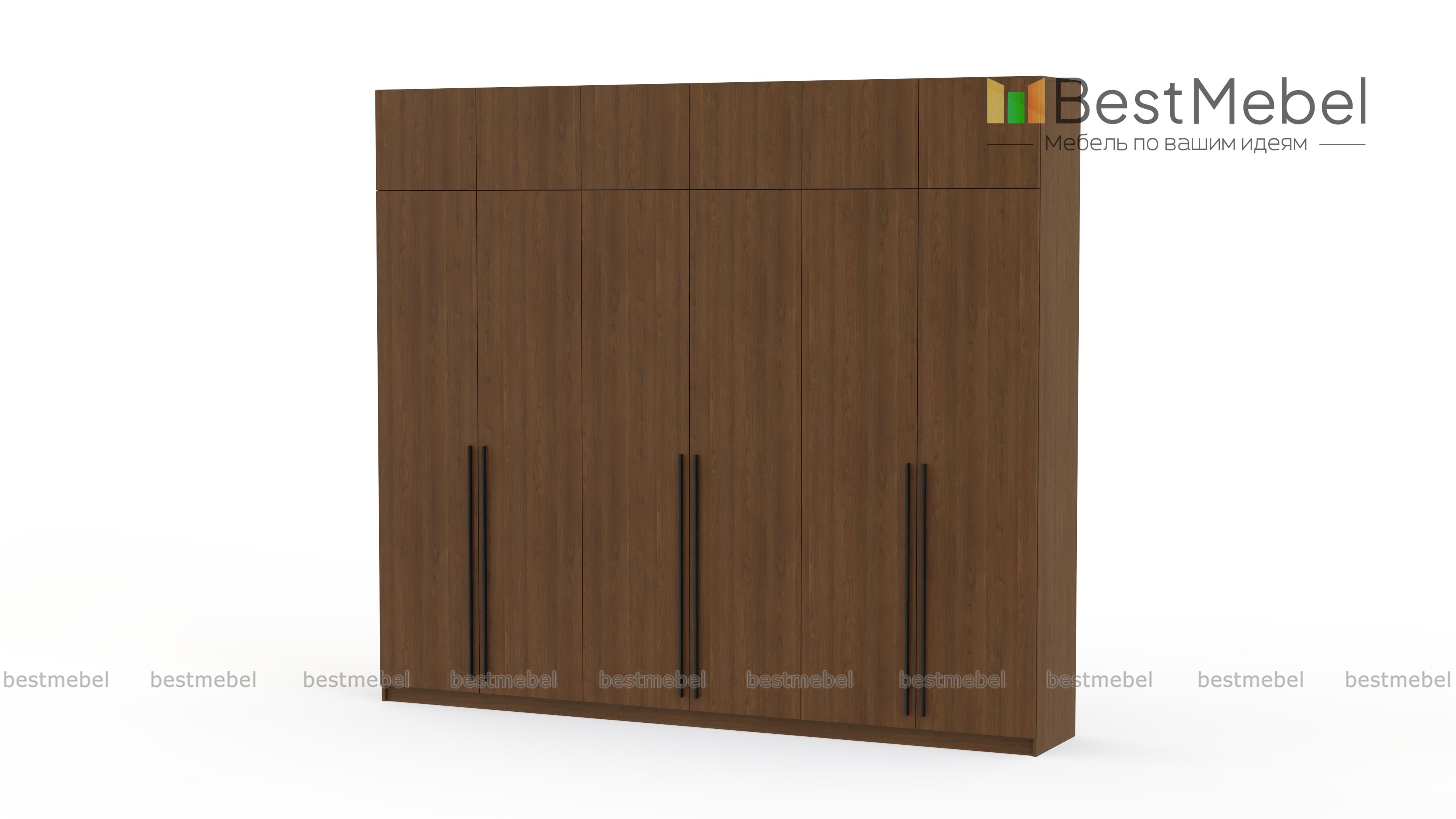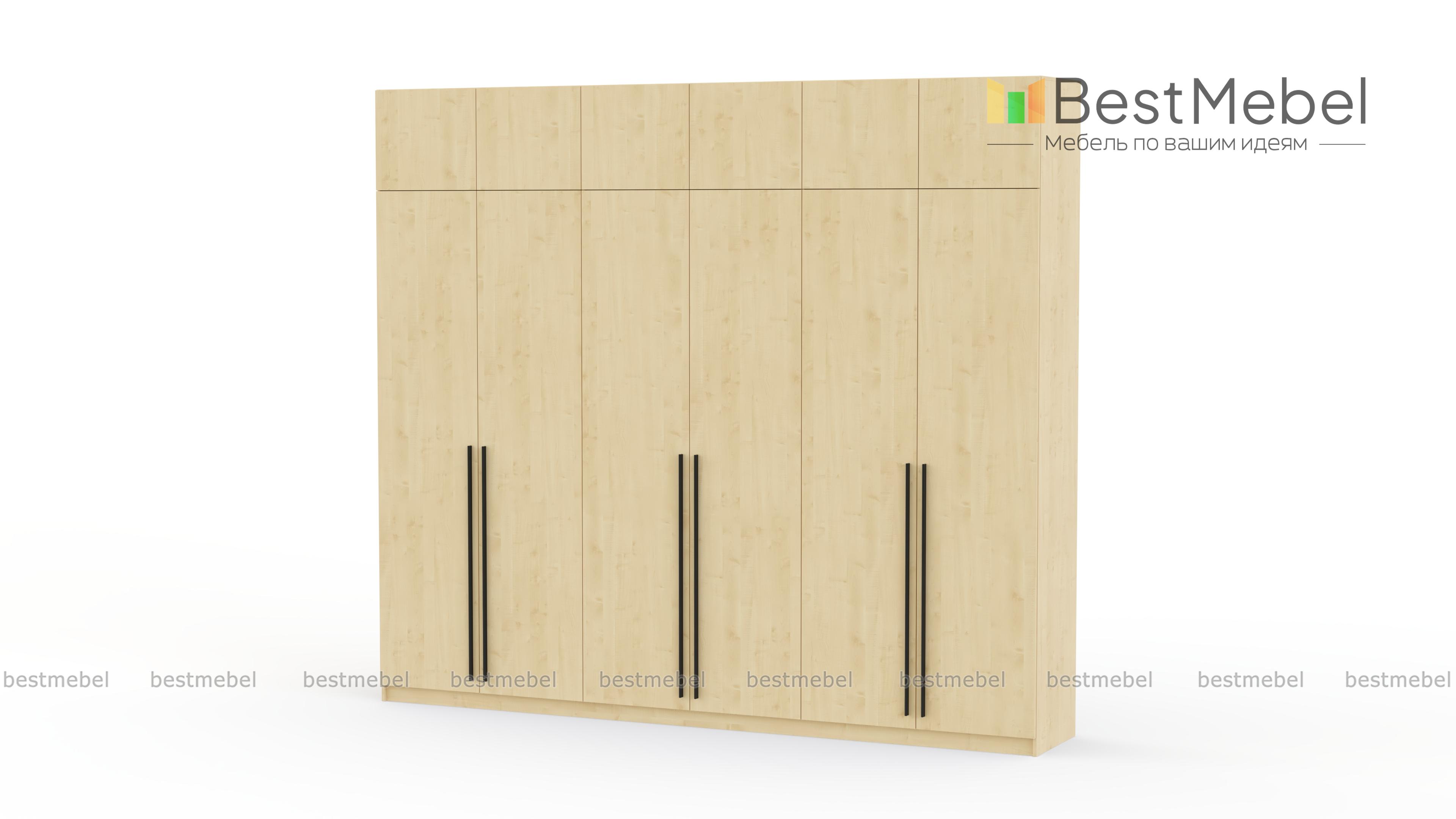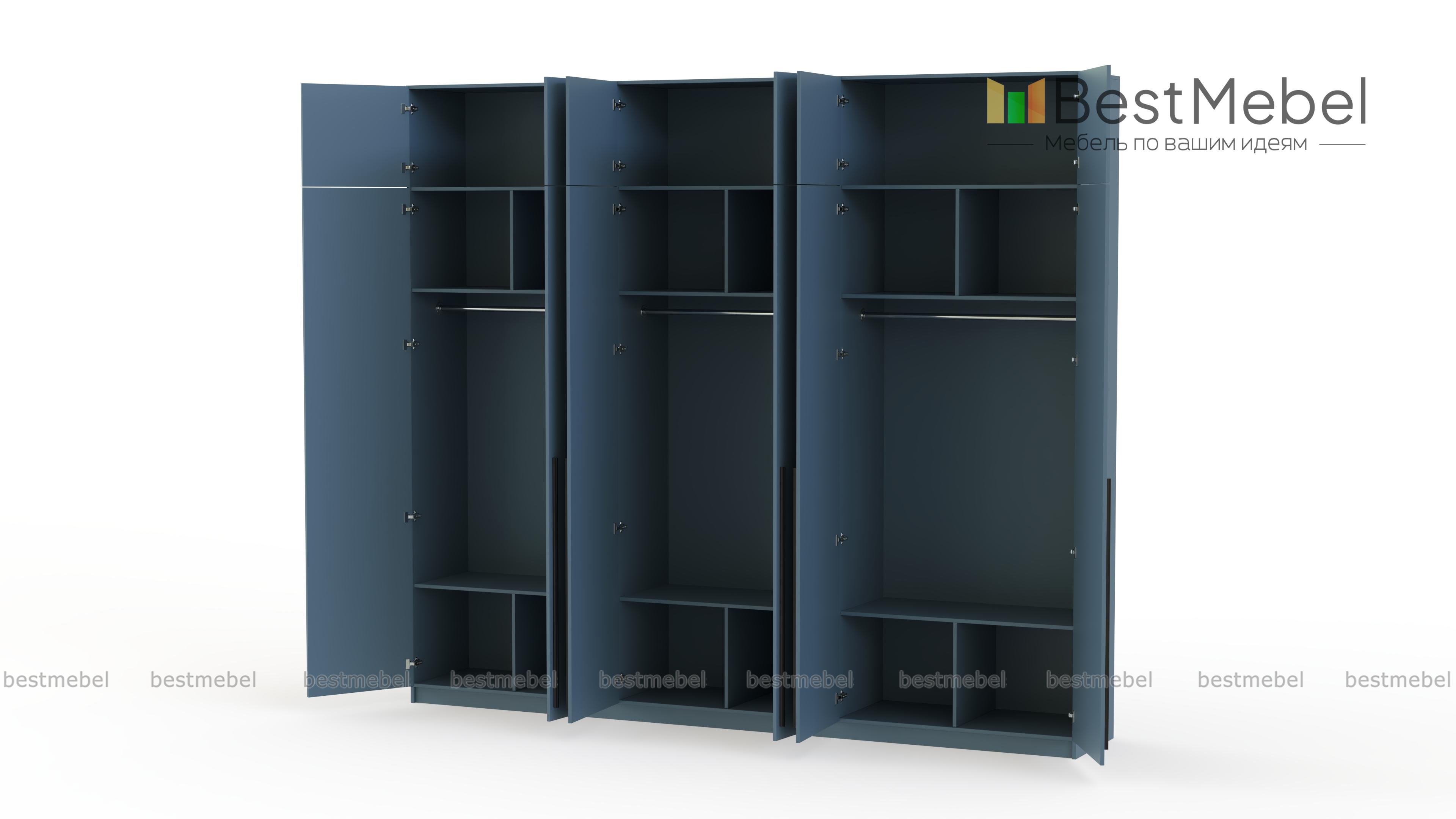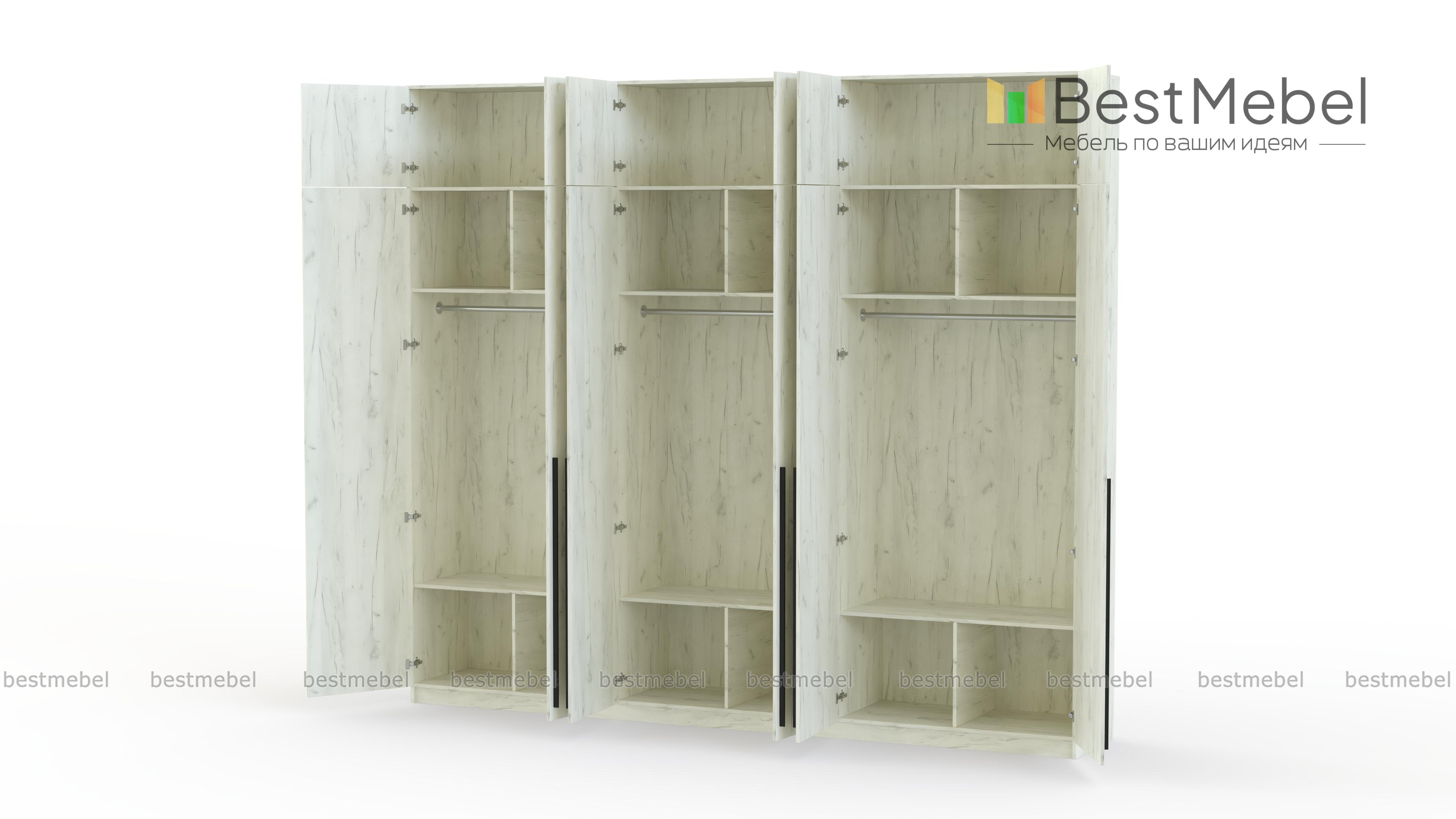 Шкаф распашной Айва 17 BMS легко вместит все необходимое благодаря трем платяным отделениям и антресоли. Шестидверная конструкция отлично вписывается в спальный интерьер и прихожие, где по максимуму задействует пространство для хранения. Элегантный современный дизайн создает сплошной светлый фасад с удлиненными ручками в качестве декора. Купить шкаф распашной Айва 17 BMS приглашаем к нам в интернет-магазин, подобрав нужные размеры, цвет и компоновку.