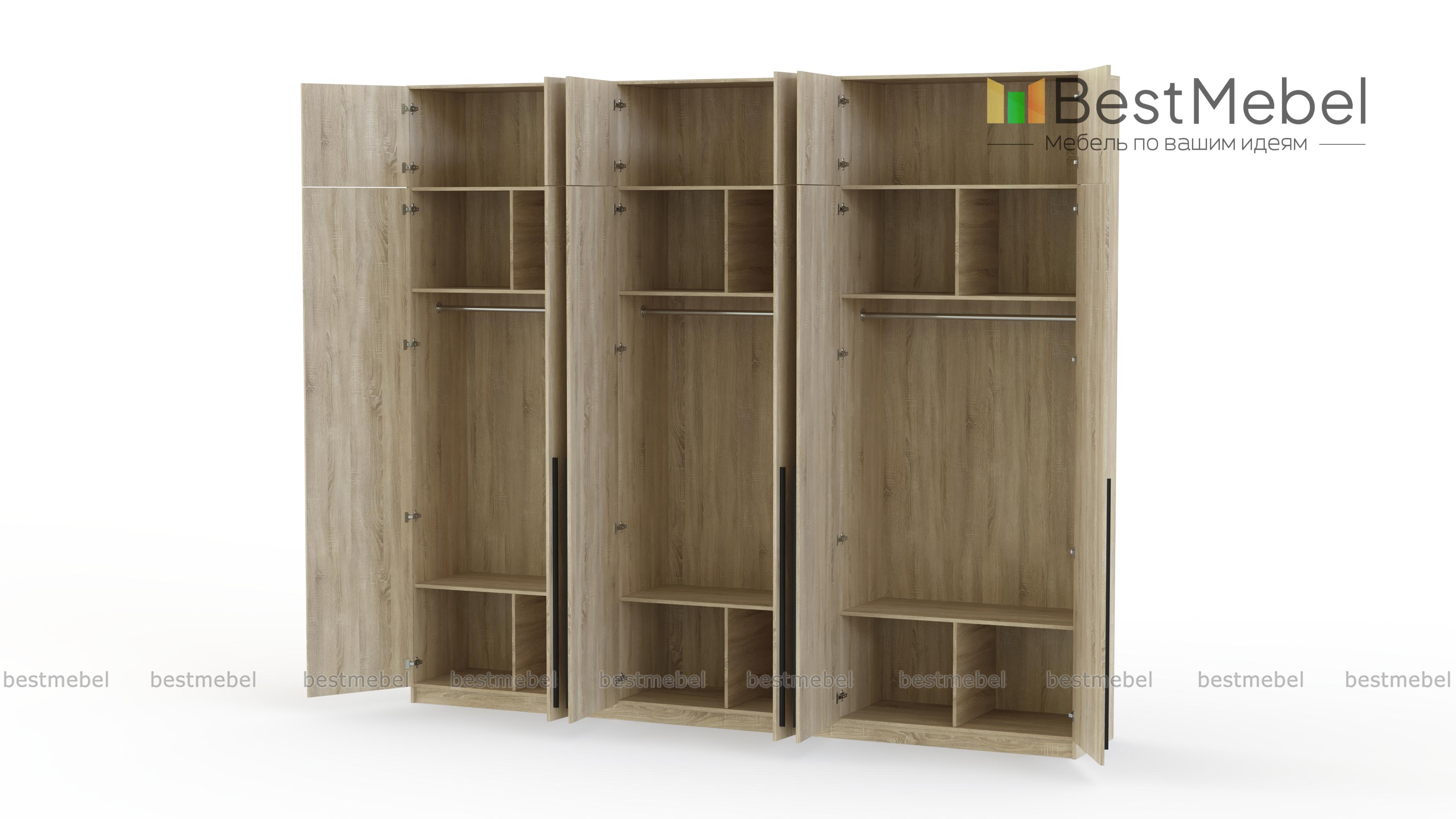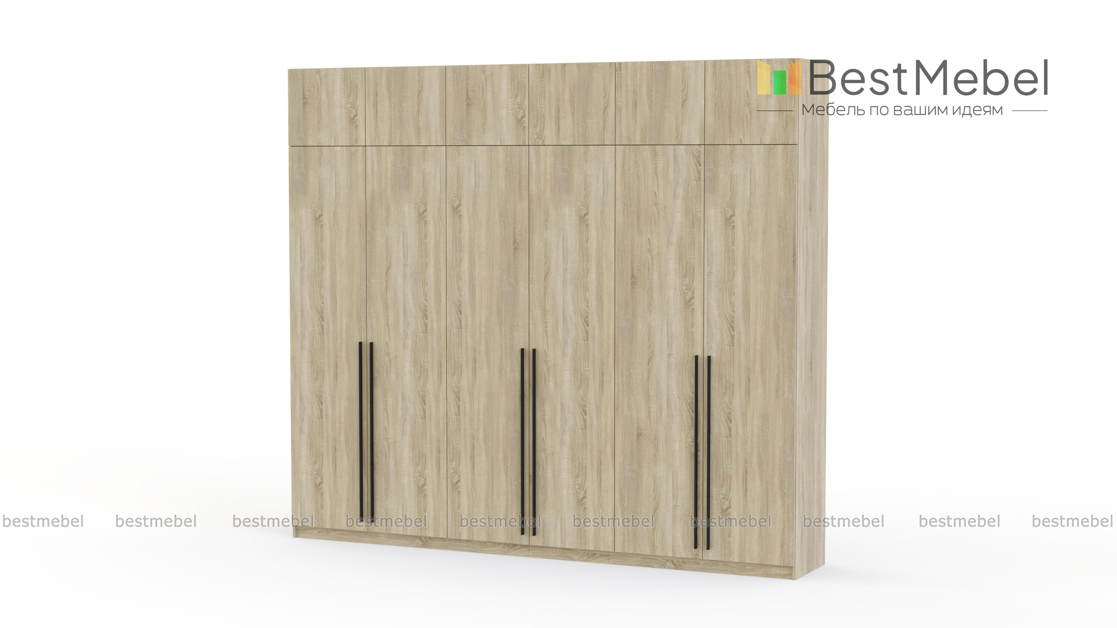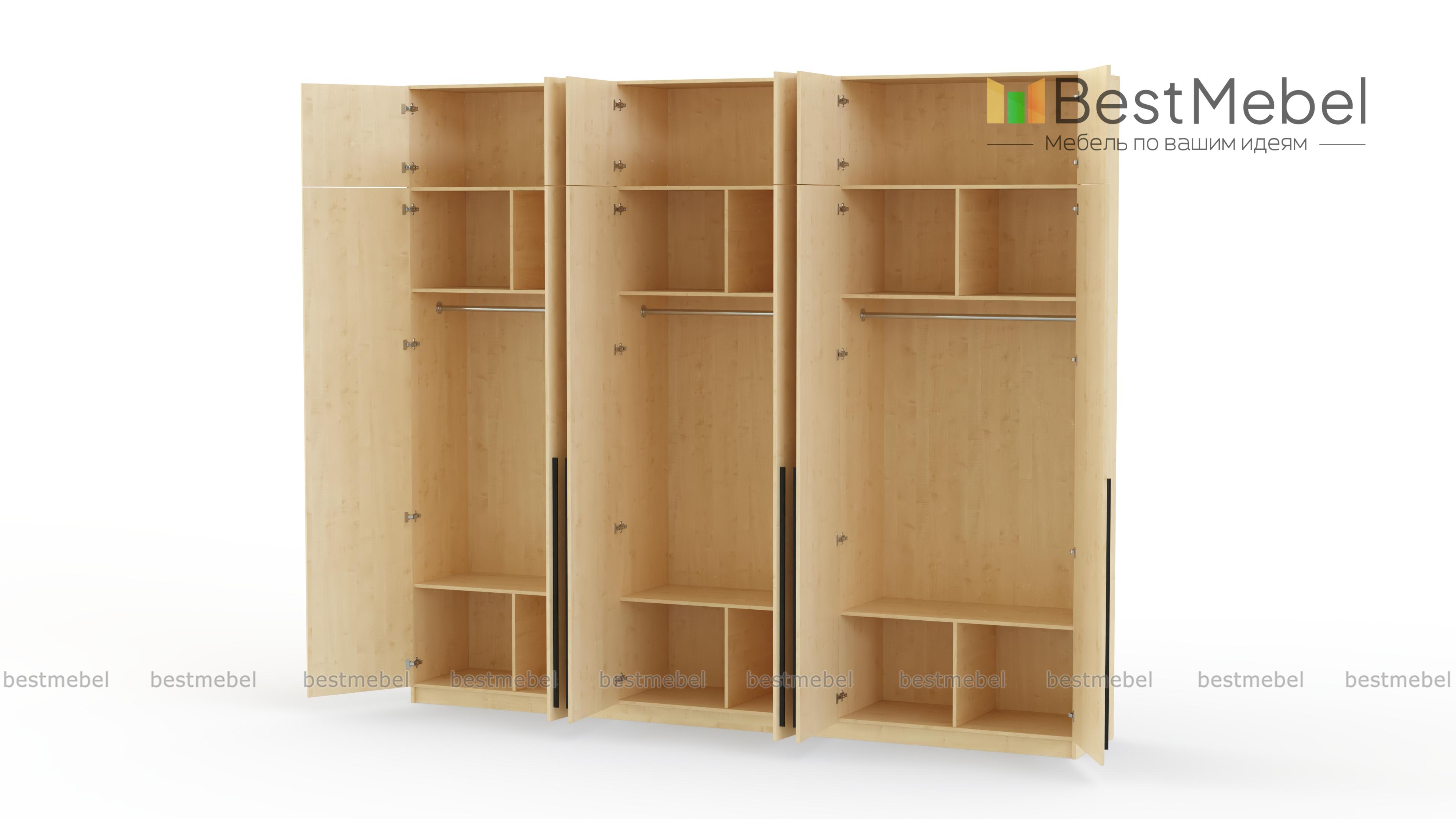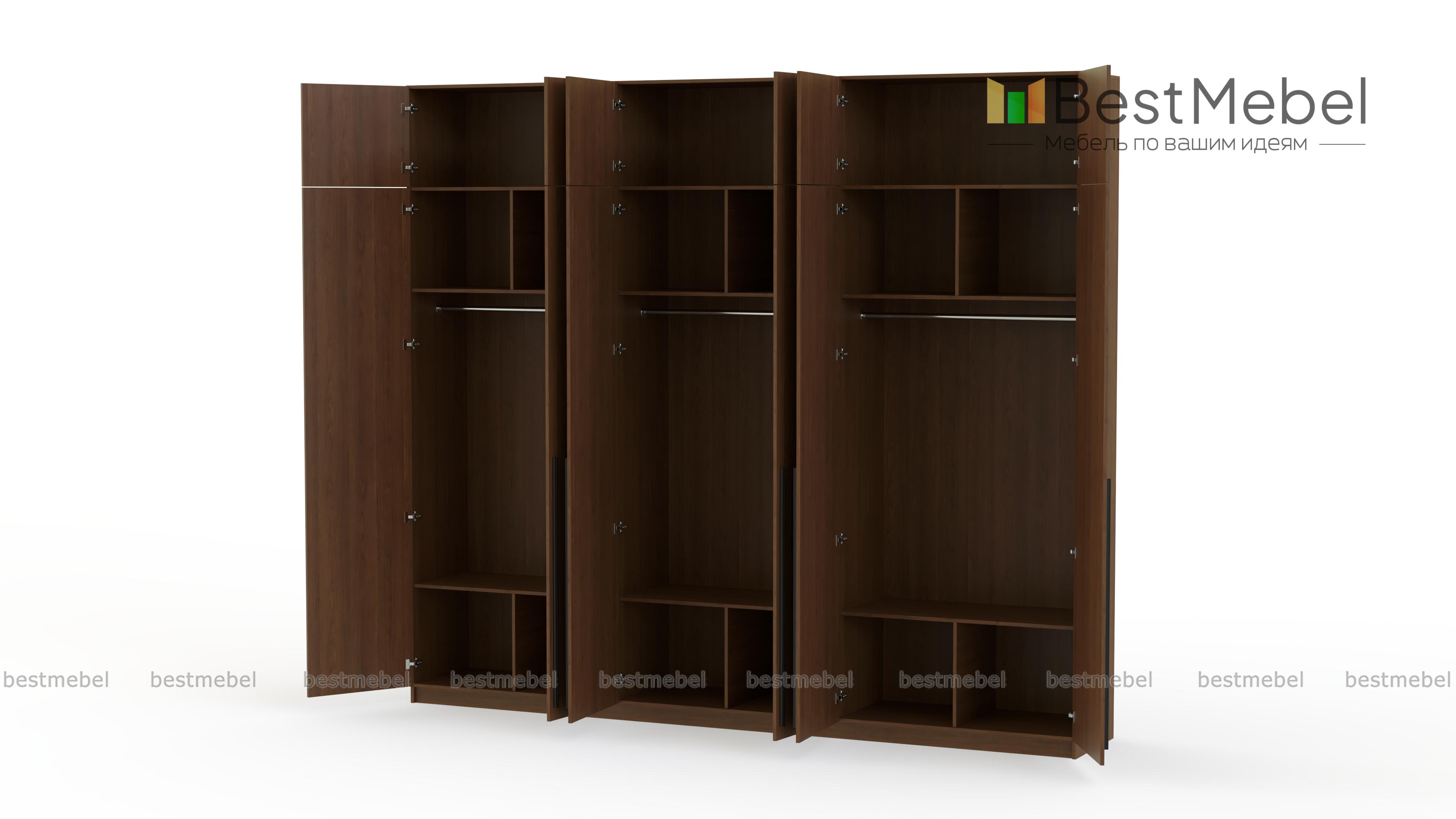 Шкаф распашной Айва 17 BMS легко вместит все необходимое благодаря трем платяным отделениям и антресоли. Шестидверная конструкция отлично вписывается в спальный интерьер и прихожие, где по максимуму задействует пространство для хранения. Элегантный современный дизайн создает сплошной светлый фасад с удлиненными ручками в качестве декора. Купить шкаф распашной Айва 17 BMS приглашаем к нам в интернет-магазин, подобрав нужные размеры, цвет и компоновку.