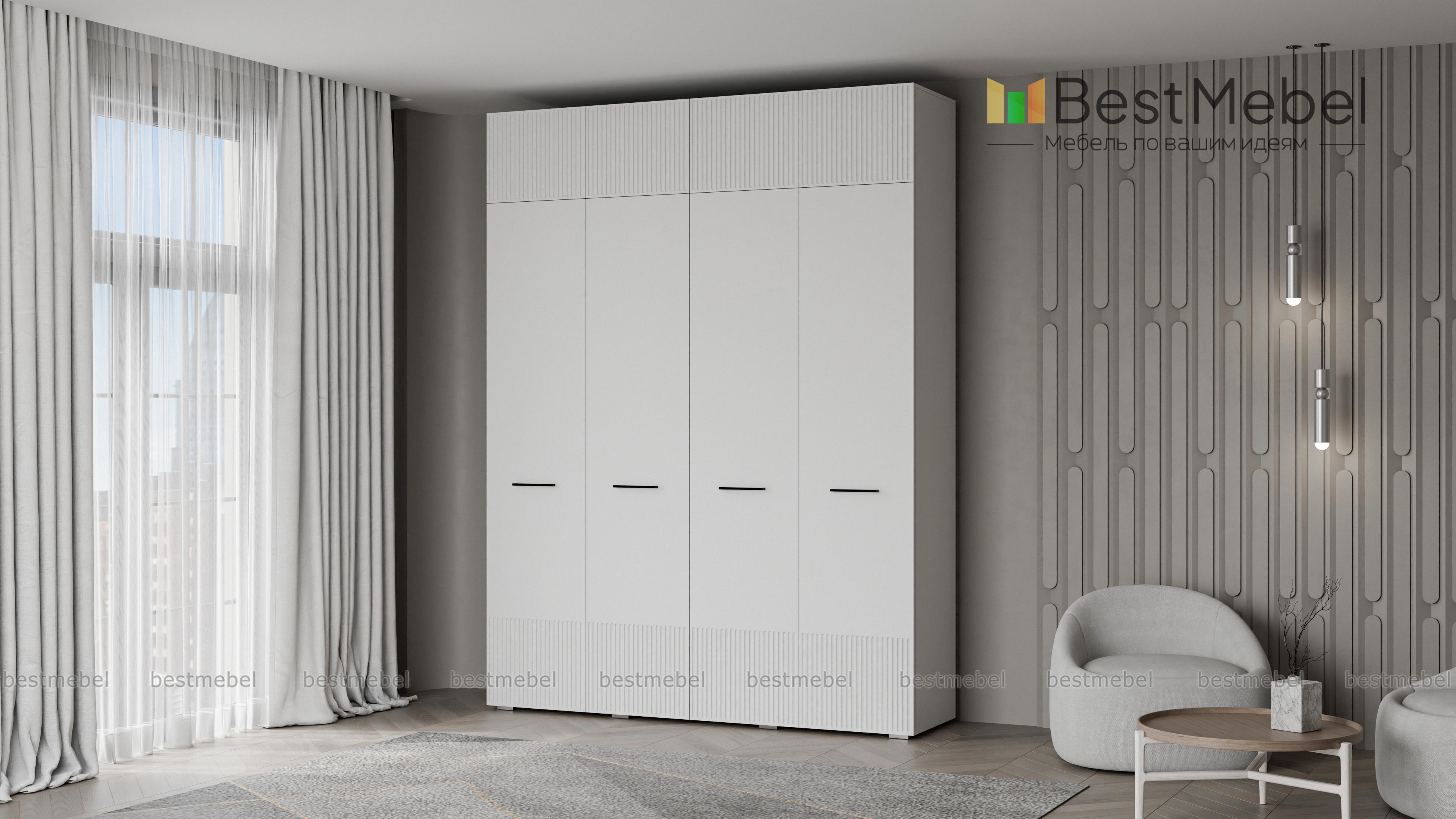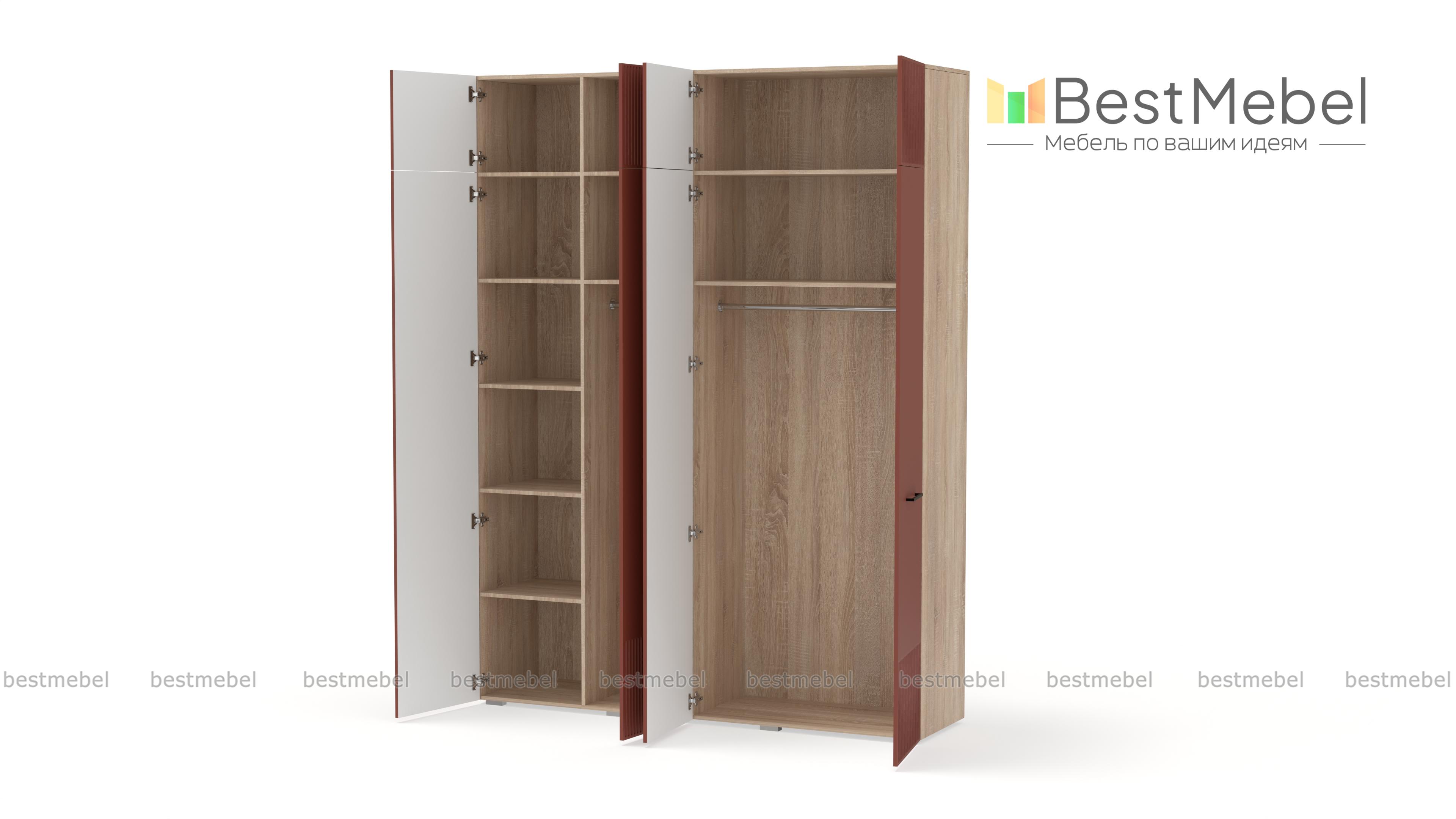 Шкаф распашной Декарт 10 BMS предоставляет еще больше места для хранения ваших вещей благодаря антресоли. В правой части высокого шкафа есть штанга и полка, а в левой — штанга и дополнительный ряд полок для сложенной одежды и текстиля. Гладкий светлый фасад с рифленым декором укомплектован стильными поперечными ручками контрастного цвета. Купить шкаф распашной Декарт 10 BMS в размере и оттенках, которые вам подходят, можно по доступной цене на сайте нашего интернет-магазина.