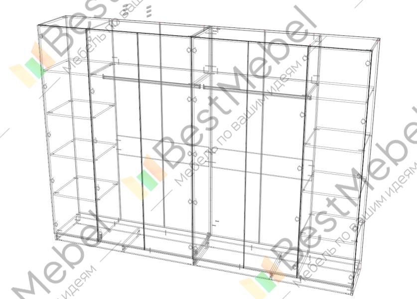 Шкаф распашной Руан 6 BMS - стильный и вместительный, станет местом хранения семейного гардероба. Фасад шестидверной конструкции, выполненный в нейтральном оттенке, имеет классическую отделку рамками. Базовая комплектация шкафа включает в себя два платяных отделения, расположенных в центре, две верхние полки и бельевые секции по бокам. Купить шкаф распашной Руан 6 BMS вы всегда сможете в нашем интернет-магазине, подобрав нужные размеры, цвет и наполнение.