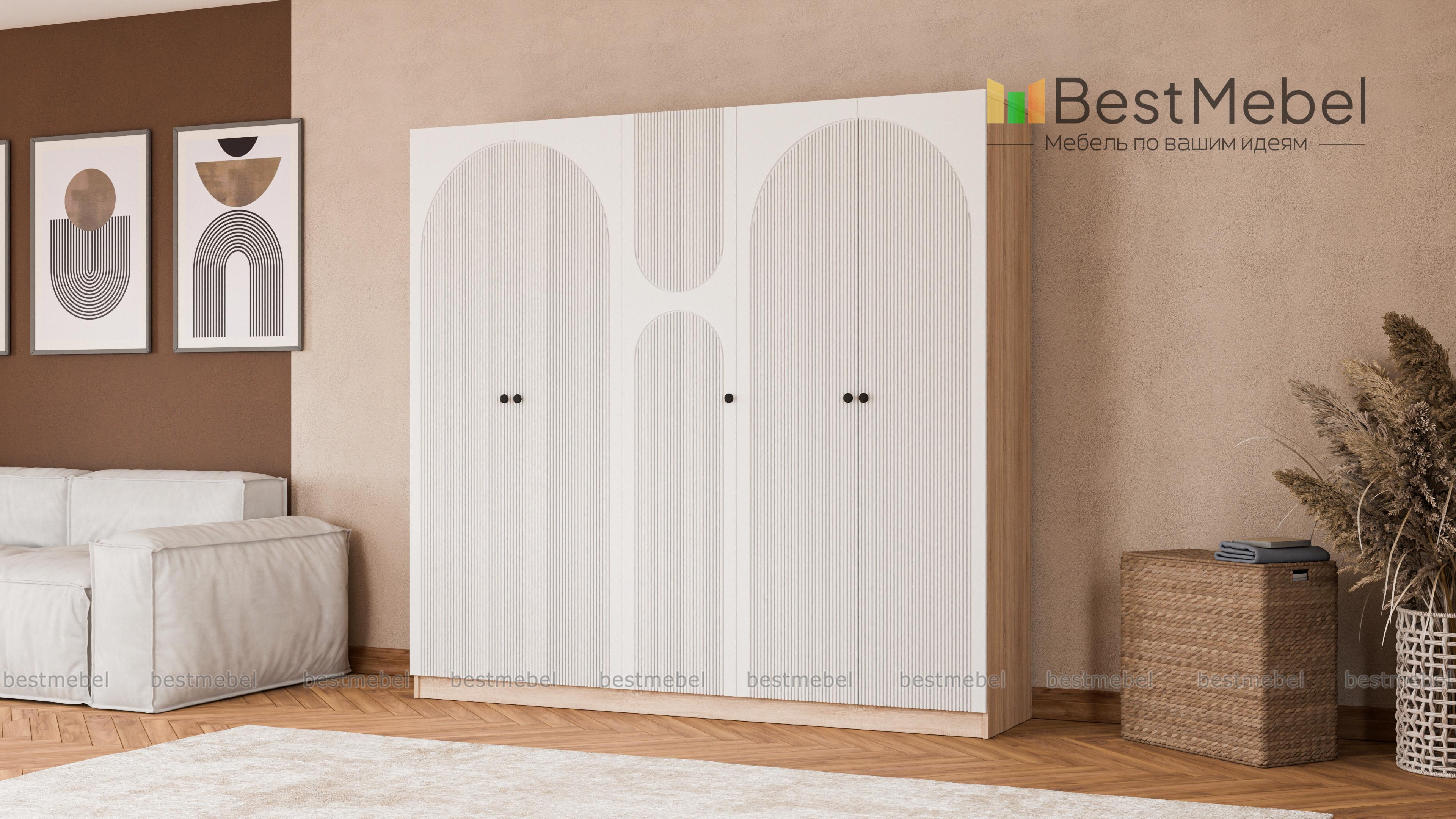 Шкаф распашной Вивьен 14 BMS подойдет тем, кому требуется много места для хранения. Два двухдверных платяных отделения дополнены однодверной секцией в центре. Шкаф изготовлен из качественной ламинированной плиты и МДФ и отличается современным дизайном, гармонично сочетая природные оттенки и оригинальную рельефную отделку фасада. Купить шкаф распашной Вивьен 14 BMS вы всегда сможете в нашем интернет-магазине с выбором размеров, цвета и наполнения.