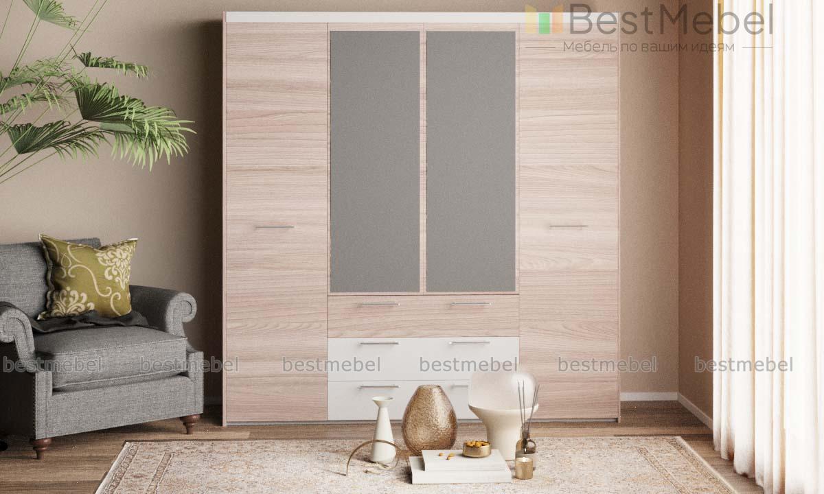 Шкаф Виктория Комби BMS отличается крупными габаритами и вместительностью. Комбинированная конструкция позволит оптимизировать хранение одежды, обуви, аксессуаров и домашнего текстиля, сэкономив на лишней мебели. Шкаф, выполненный в светлых древесных тонах и белом цвете, оборудован распашными отделениями с полками и штангой, центральной платяной секцией с зеркальным фасадом и тремя широкими выдвижными ящиками. Купить шкаф Виктория Комби BMS для просторной спальни или прихожей приглашаем к нам в интернет-магазин.