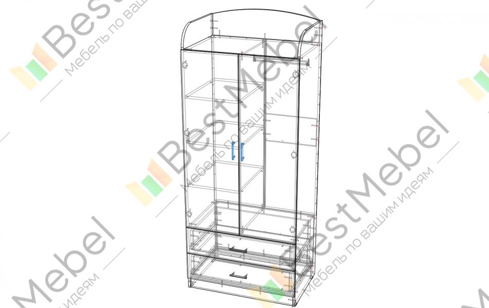 ТИСА ШДУ-1 BMS – двухдверный распашной шкаф, незаменимый элемент интерьера спальни, детской комнаты или прихожей. Компактные размеры сделают эту модель подходящим вариантом для малогабаритных помещений. В основании шкафа располагаются вместительные выдвижные ящики, внутреннее наполнение основного отделения – штанга и полки. Дополнительная полезная площадь - верхняя часть, ограниченная скругленными бортиками. Купить шкаф ТИСА ШДУ-1 BMS недорого вы сможете в нашем интернет-магазине.