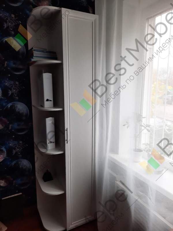 Угловой шкаф Ника П024 BMS ‒ интересное решение для малогабаритных помещений. Идеально подходит для прихожей. Может также располагаться в гостиной, детской, спальне. Станет украшением интерьера Вашего дома, добавит комфорт. Композиция состоит из узких секций. Справа полноценный шкаф, оборудованный полками для хранения необходимых вещей. Укомплектован дверкой, состоящей из рамки и вставки. Слева стеллаж с открытыми закруглёнными полочками. На них можно разместить книги, декоративные статуэтки, домашние цветы.