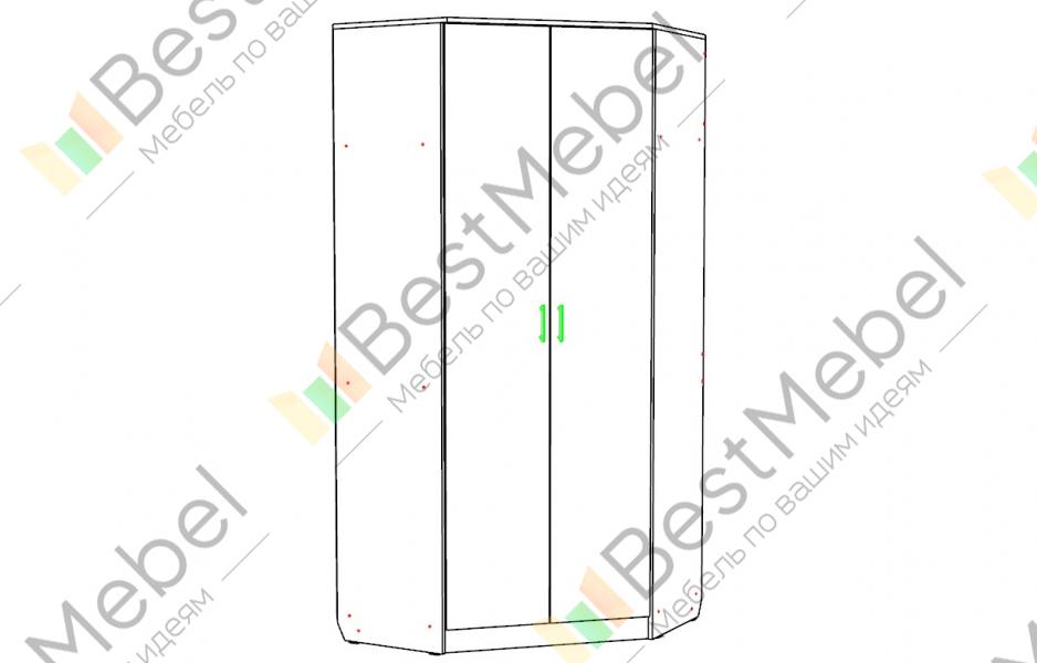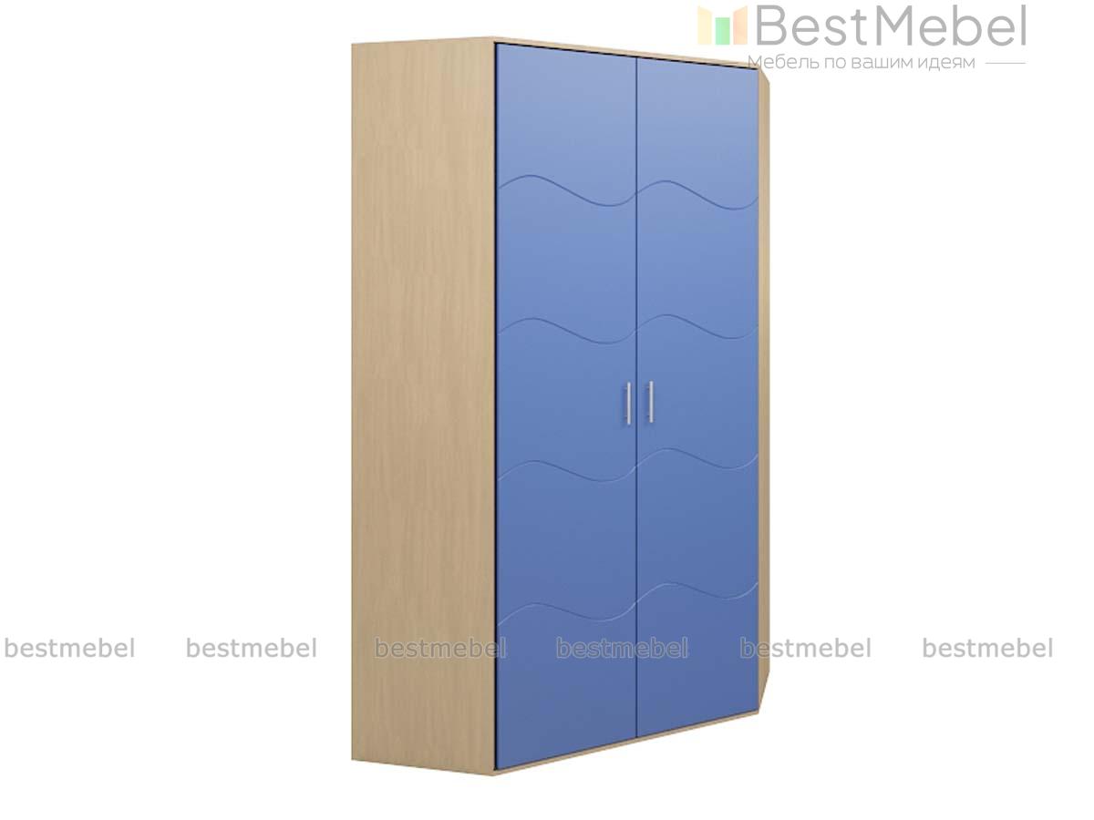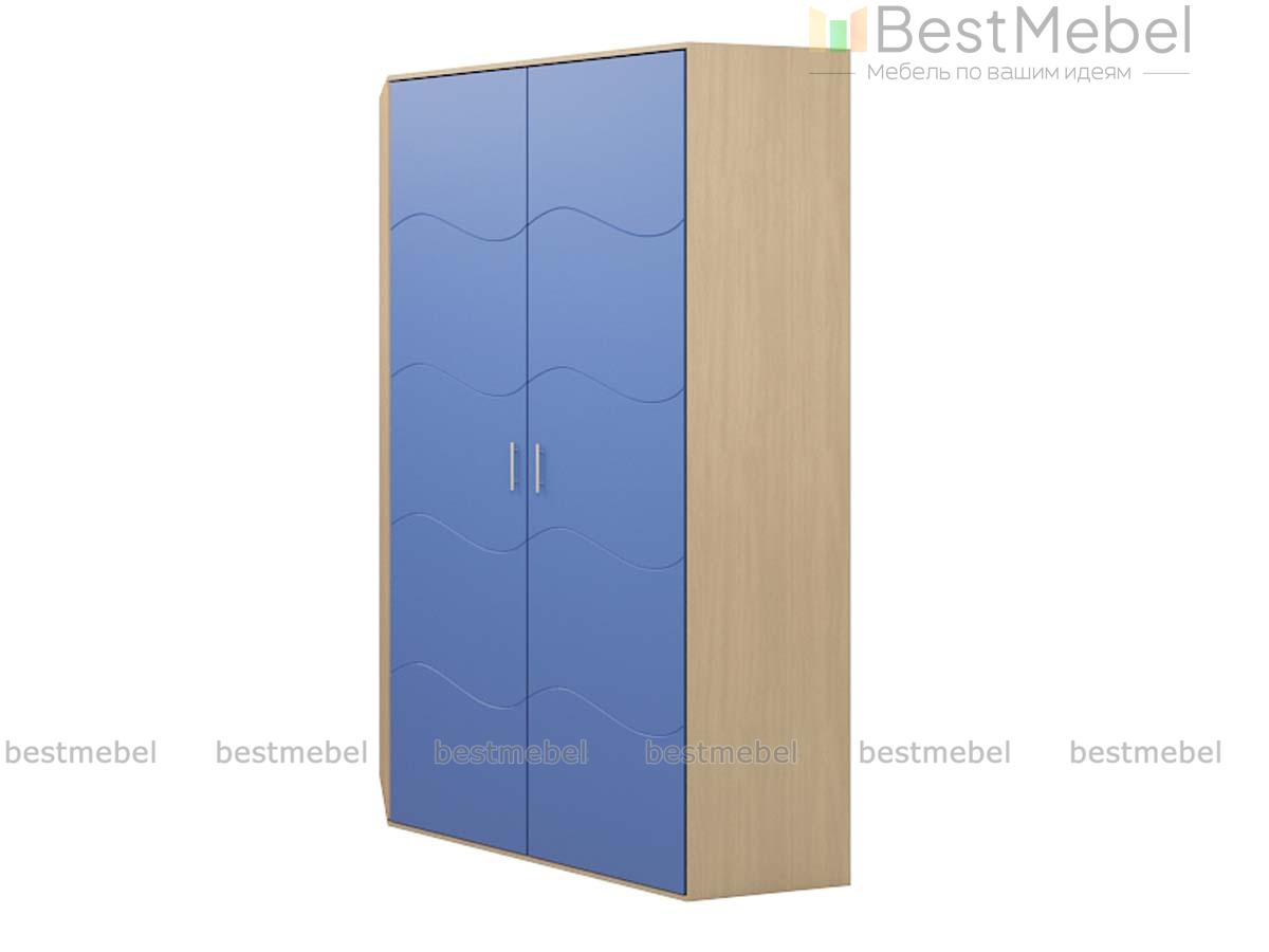 Шкаф угловой НМ 009.02 BMS разработан для любителей повышенной функциональности и неординарного дизайна в современном стиле. Интересное сочетание цветов позволит дополнить интерьер Вашей комнаты. Изюминкой компактного шкафа являются две дверки, украшенные волнообразными резными линиями и прозрачными ручками. Внутреннее пространство укомплектовано четырьмя широкими вместительными полками для различных вещей. Для максимального комфорта модель оборудована двумя выездными штангами на разных уровнях.