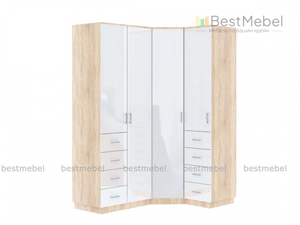 Шкаф Меркурий люкс-7 BMS станет отличным выбором для легкой и светлой современной спальни. Компактная угловая модель сэкономит свободное пространство, а лаконичные глянцевые фасады придадут помещению визуальный объем. Для максимально удобного хранения предметов гардероба в комплект входят двухдверный шкаф, угловая секция и пенал с платяными, бельевыми отделениями и выдвижными ящиками для мелочей. Купить шкаф Меркурий люкс-7 BMS, подобрав оптимальные параметры, вы сможете в нашем интернет-магазине.