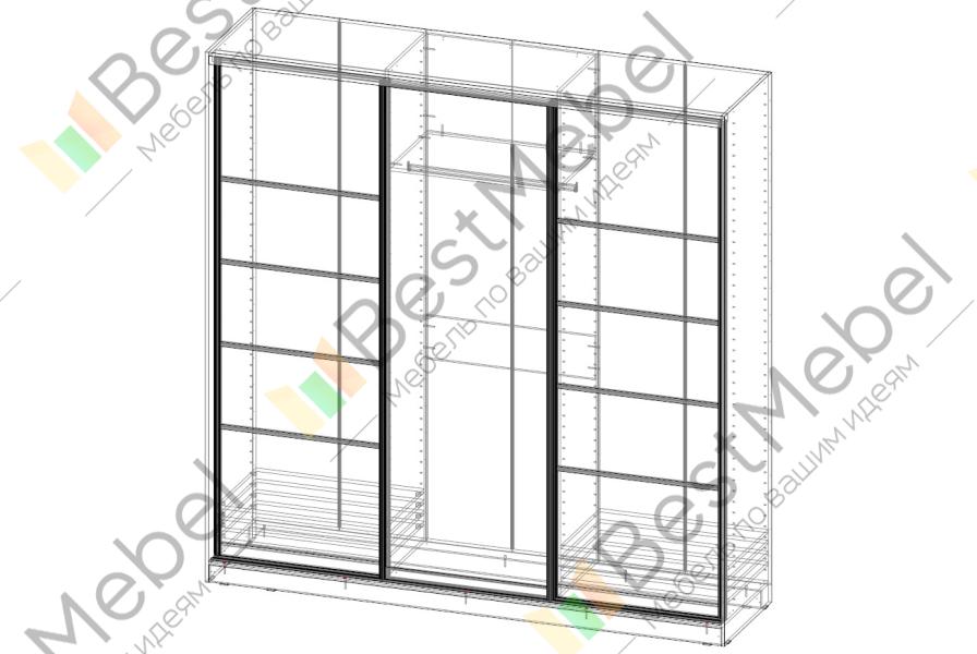 Шкаф-купе Town BMS – универсальная модель для спальни, прихожей или гостиной. Фасады трехдверного шкафа выполнены в сочетании классических древесных тонов и стеклянной вставки в центральной части. Конструкция сможет выгодно использовать доступное пространство, сэкономить полезную площадь комнаты и компактно разместить большое количество вещей – от одежды на плечиках до бытовых мелочей. Внутреннее наполнение представлено полками и штангой, в козырьке возможно установить встроенную подсветку. Купить шкаф-купе Town BMS приглашаем в наш интернет-магазин.