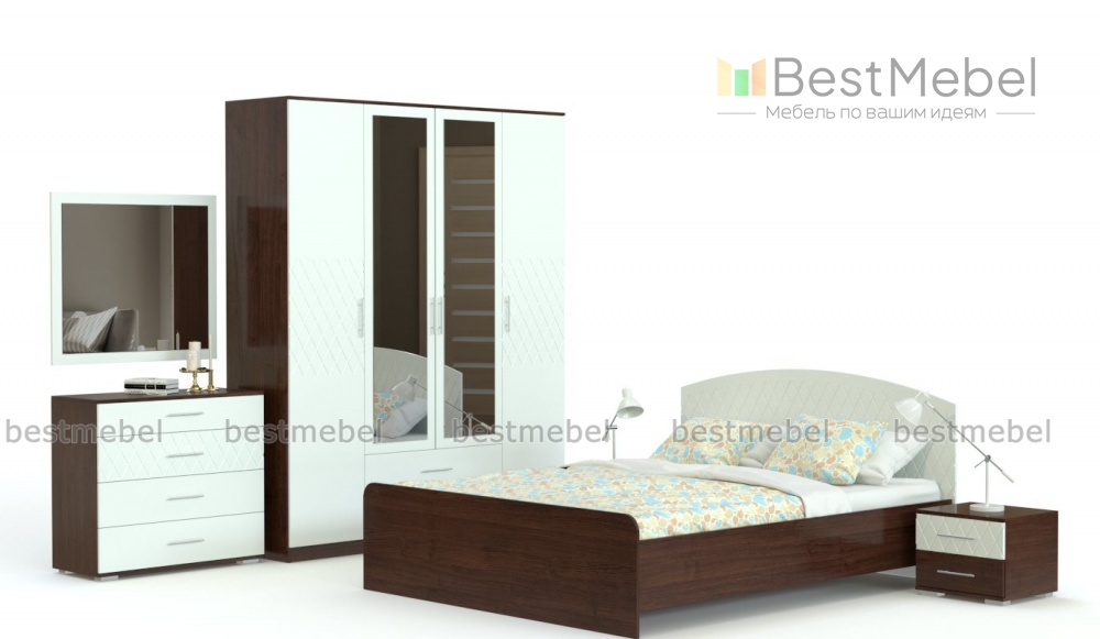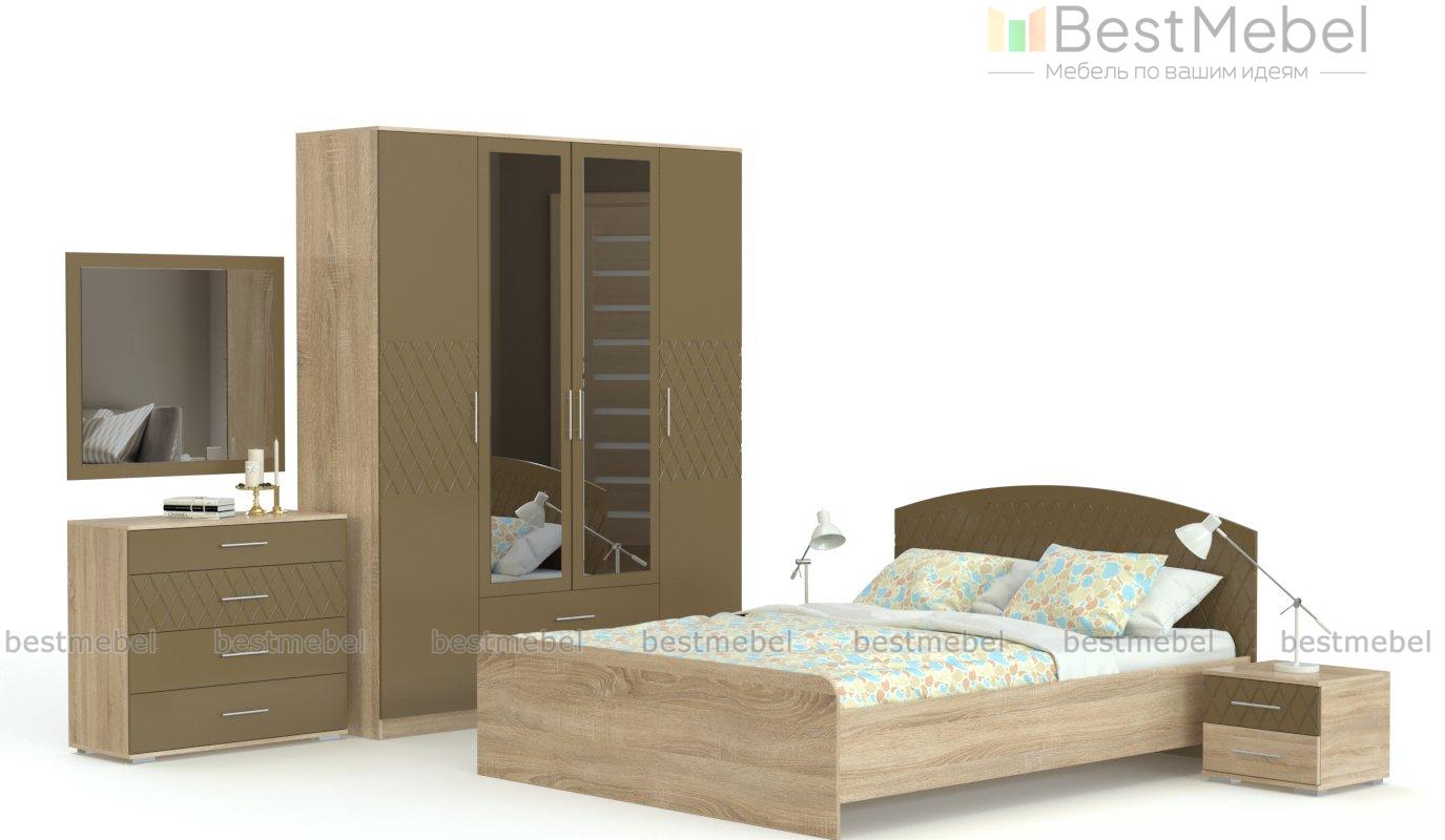 Спальня Милена-1 мдф BMS выполнена в стиле современной классики, который гармонично объединяет достоинства обоих направлений. Роскошный комплект с корпусом древесных тонов и глянцевыми пастельными фасадами, украшенными фрезерованным рисунком, сделает комнату комфортной и элегантной. Спальня оборудована просторной кроватью со скругленной спинкой в изголовье, прикроватными тумбами, комодом с навесным зеркалом и четырехдверным шкафом с зеркалами. Купить спальню Милена-1 мдф BMS приглашаем по лучшей цене в наш интернет-магазин.