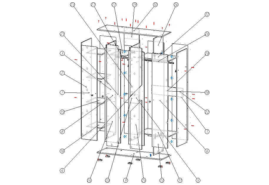 Одно из главных достоинств этого функционального модульного комплекта – возможность компоновать элементы по своему вкусу с учетом возможностей помещения. К комплектации предложены два распашных шкафа с зеркалами – платяной и бельевой, комод с пятью выдвижными ящиками, туалетный столик с зеркалом, двуспальная кровать и две тумбы. Спальня Саломея BMS выполняется в модных контрастных цветах и декорирована оригинальными открытыми полочками и металлическими вставками.