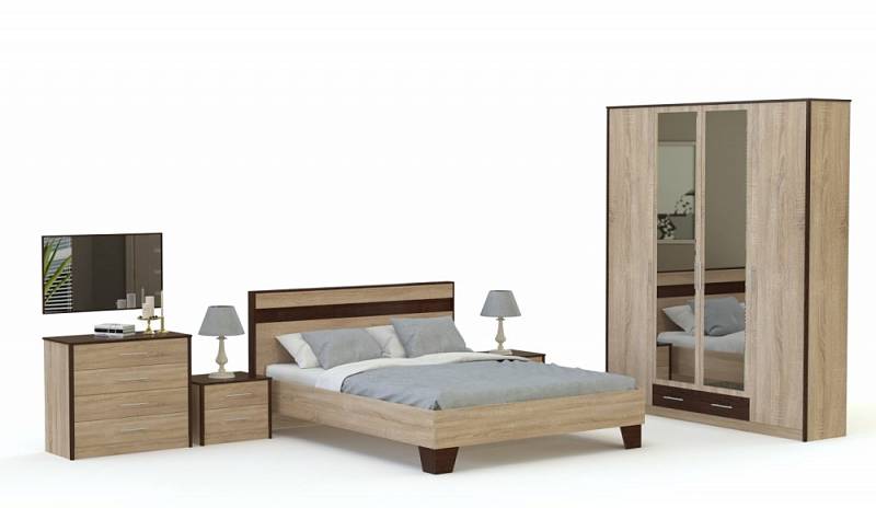 Спальня Скарлет BMS – не только комплект повседневного пользования, но и представительница роскоши, богатства. На изящной кровати с прочным каркасом и высоким изголовьем можно спать до самого утра и ни разу не ощутить на себе дискомфорт. На расположенных рядом двух тумбочках предлагается поставить светильники и хранить личные принадлежности. Конечно же, в спальне, где отдыхают люди, должен находиться надёжный хранитель гардероба. Поэтому Вашему пользованию предлагается вместительный шкаф с зеркальными створками, выдвижным ящиком и комод с зеркалом. Рамочное обрамление, основной нежный оттенок и массивные сильные ножки спального места придают комплекту необычайно красивый образ. Купить по низкой цене спальню Скарлет BMS можно именно у нас.
