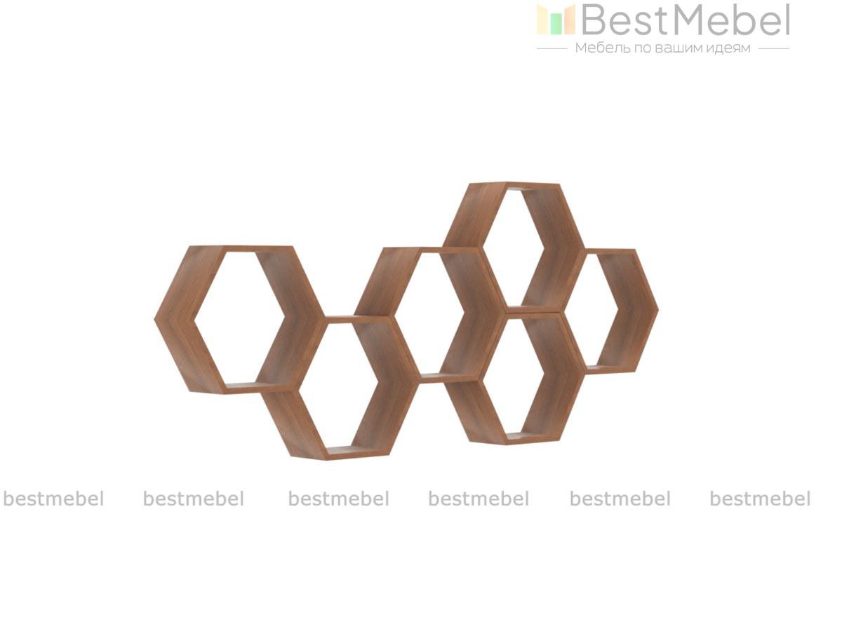 Полка Рим 1 BMS состоит из модулей-гексагонов, внешне напоминая соты. Оригинальная подвесная композиция будет уместна в любом из помещений дома – от столовой до рабочего кабинета, помогая сделать хранение максимально удобным. Открытые полки из ЛДСП, выполненные в древесных тонах на выбор, отличаются прочностью, простотой ухода и надолго сохраняют эстетичный внешний вид. Купить полку Рим 1 BMS с учетом необходимых размеров приглашаем в наш интернет-магазин.
