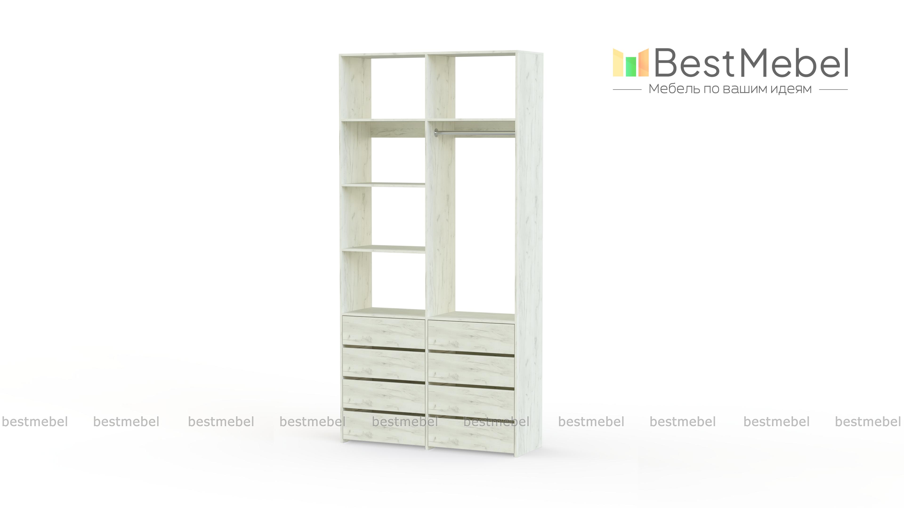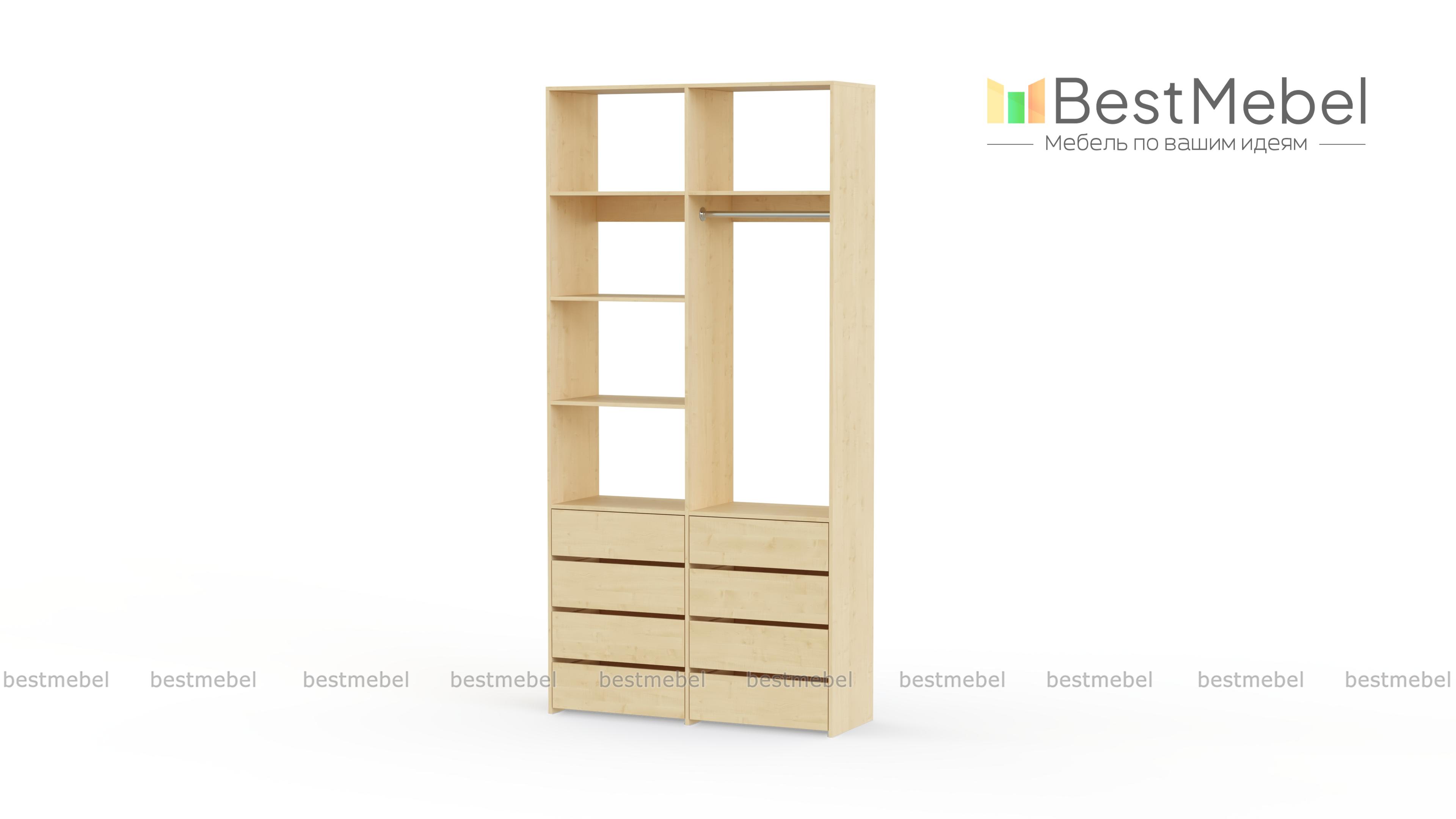 Стеллаж для одежды Мирта 3 BMS – функциональный и стильный предмет обстановки для вашего дома. Открытая конструкция позволяет разместить на виду повседневную одежду, коробки с обувью и органайзеры с мелочами, а для прочих вещей предусмотрены два ряда выдвижных ящиков. Прочность и долговечность стеллажу гарантируют материалы и фурнитура высокого качества. Купить стеллаж для одежды Мирта 3 BMS вы сможете в нашем интернет-магазине с изготовлением по индивидуальным размерам.