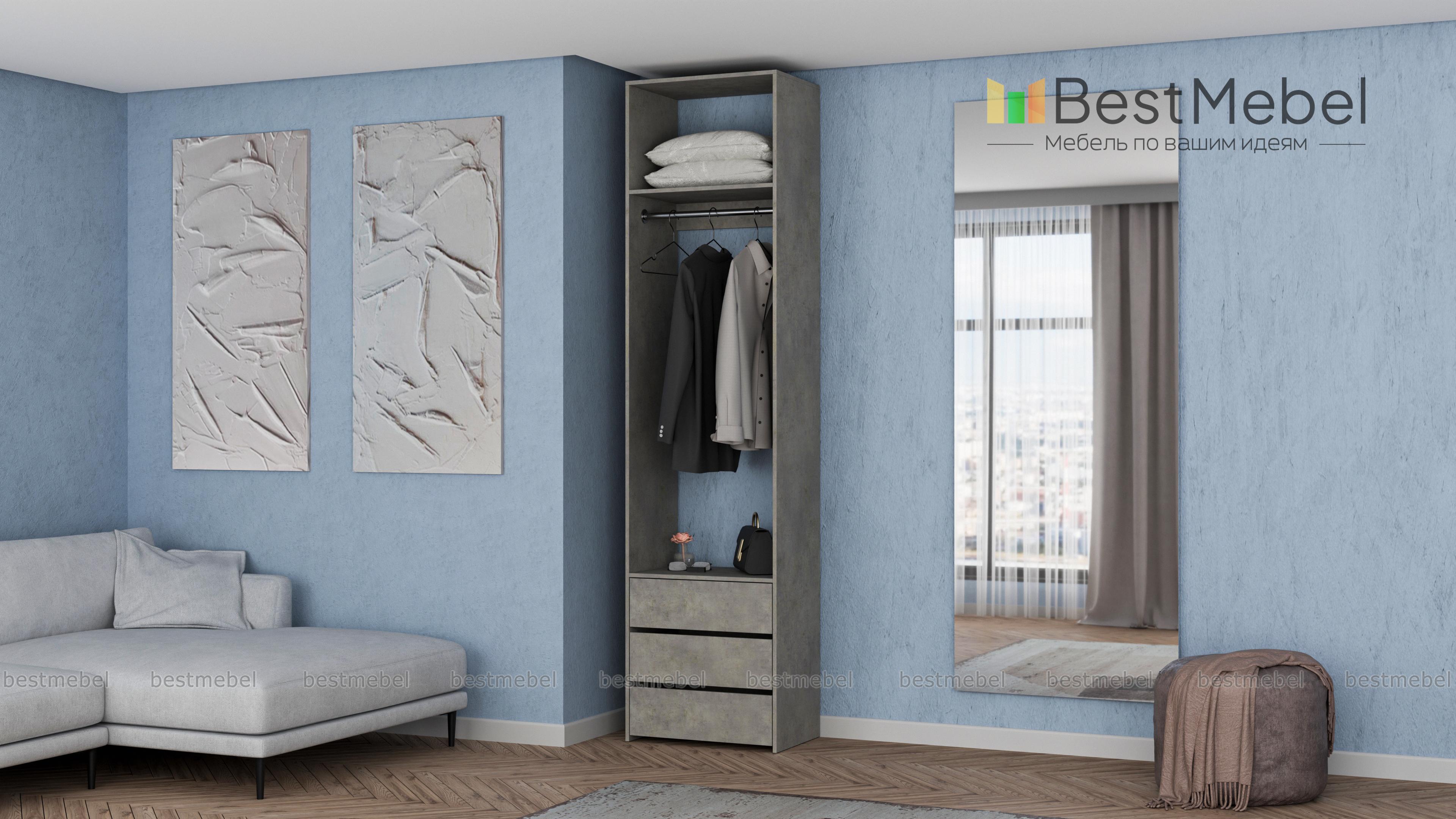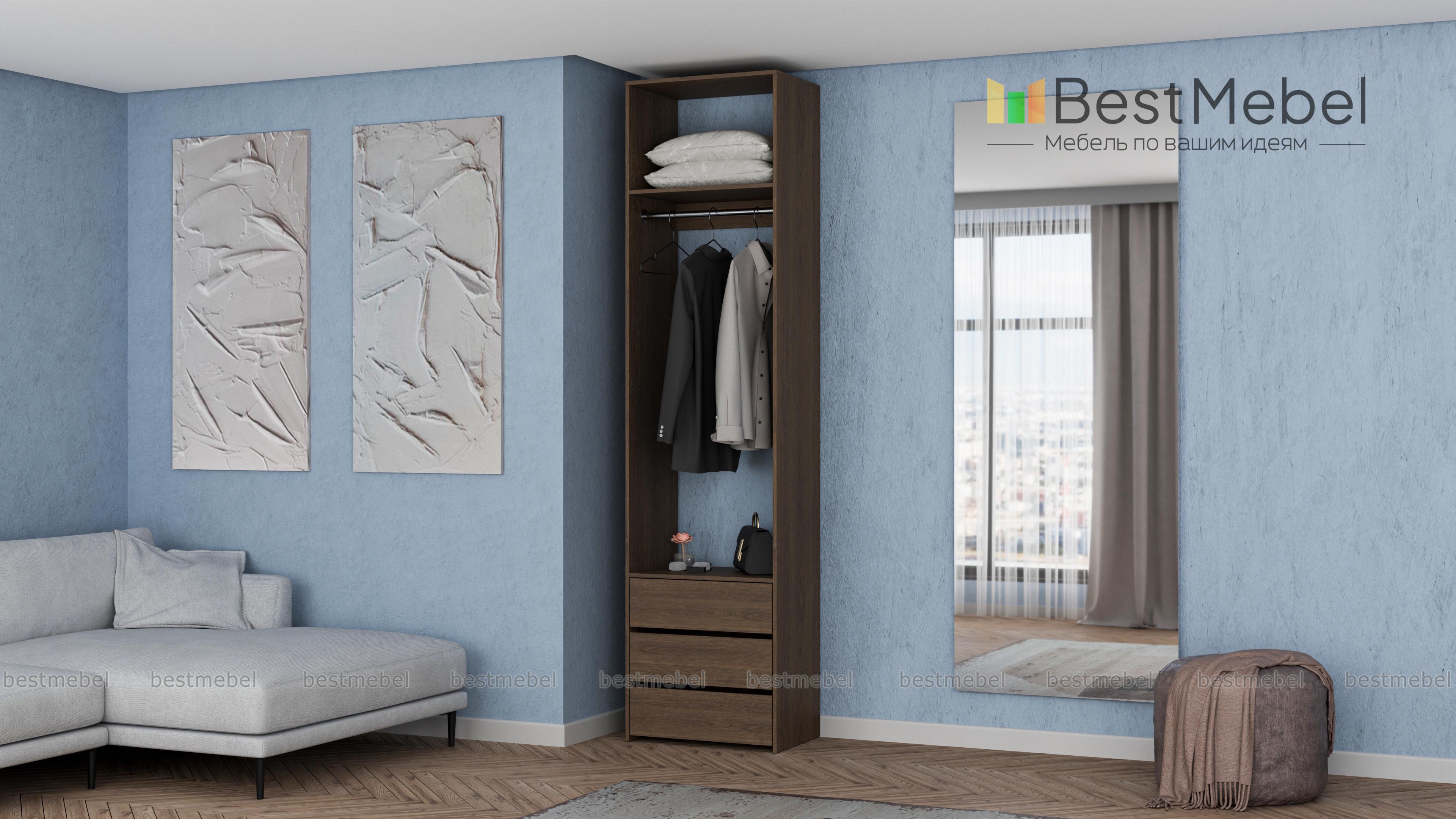 Стеллаж для одежды Мирта 33 BMS решает проблему хранения в маленьких прихожих и гардеробных. Компактная односекционная модель в светлом оттенке эстетично выглядит и не загромождает пространство. Для размещения в удобном доступе одежды, обуви и сезонных аксессуаров узкий стеллаж оборудован полкой, штангой и тремя выдвижными ящиками снизу. Купить стеллаж для одежды Мирта 33 BMS приглашаем в наш интернет-магазин с возможностью выбора цвета и размеров.