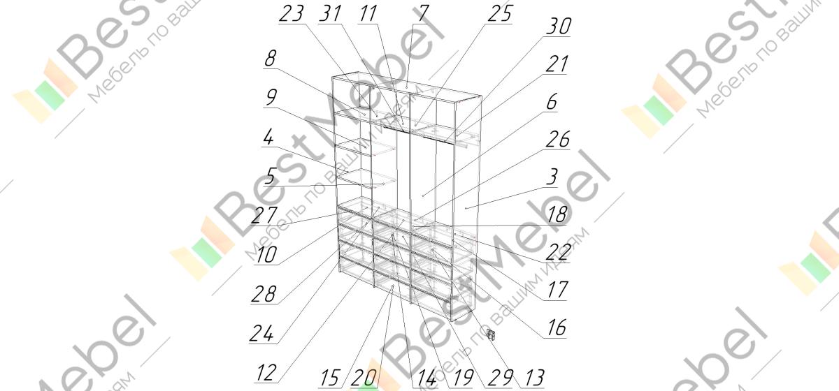 Стеллаж для одежды Мирта 48 BMS имеет минималистичный и функциональный дизайн. Трехсекционная конструкция включает в себя штанги для вешалок с одеждой, выдвижные ящики для белья и верхние полки, отделение слева для удобства также разделено двумя полками. Материал изготовления — прочная и долговечная ламинированная плита. Купить стеллаж для одежды Мирта 48 BMS, выполненный по индивидуальным размерам, вы сможете недорого на сайте нашего интернет-магазина.