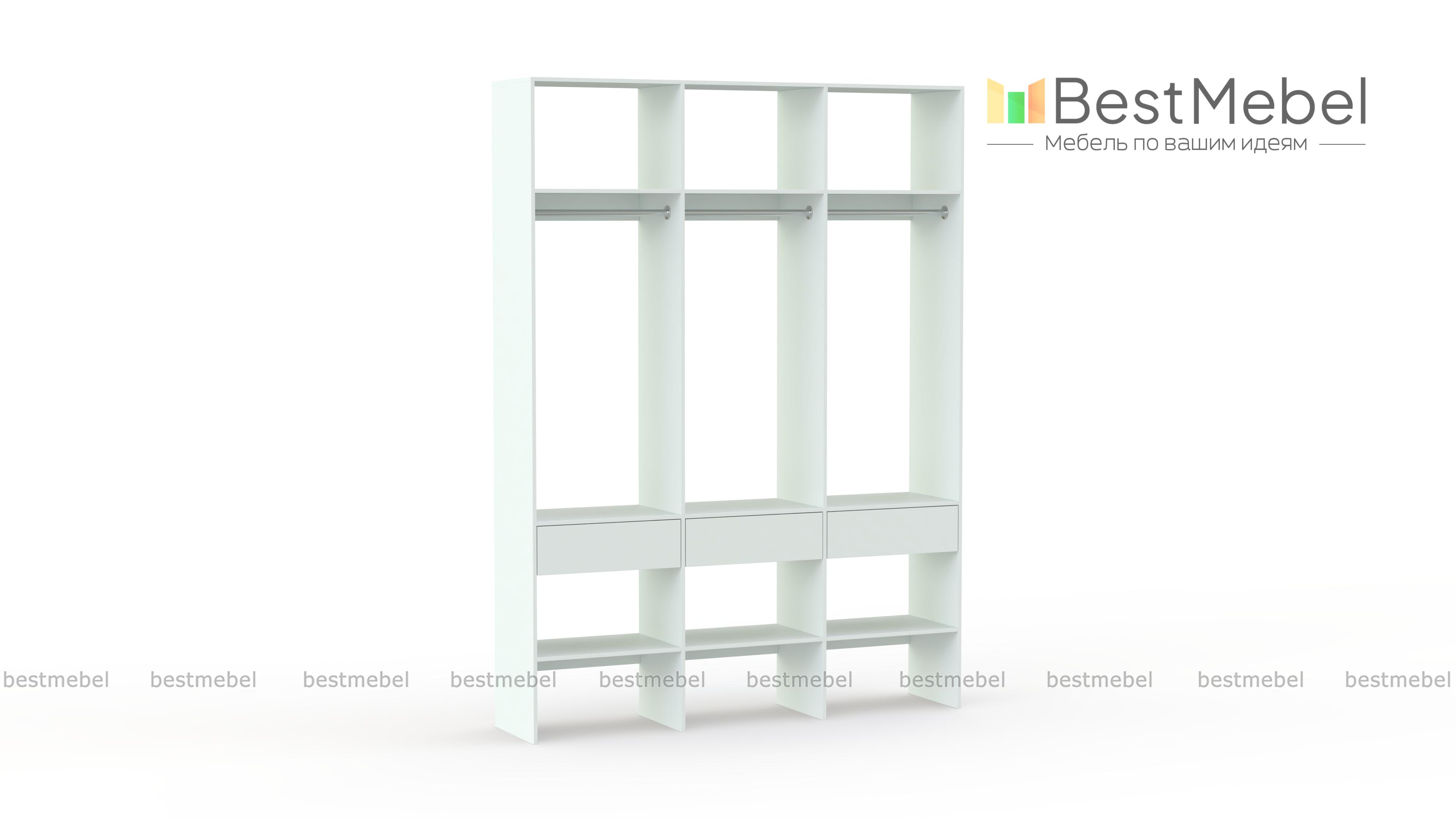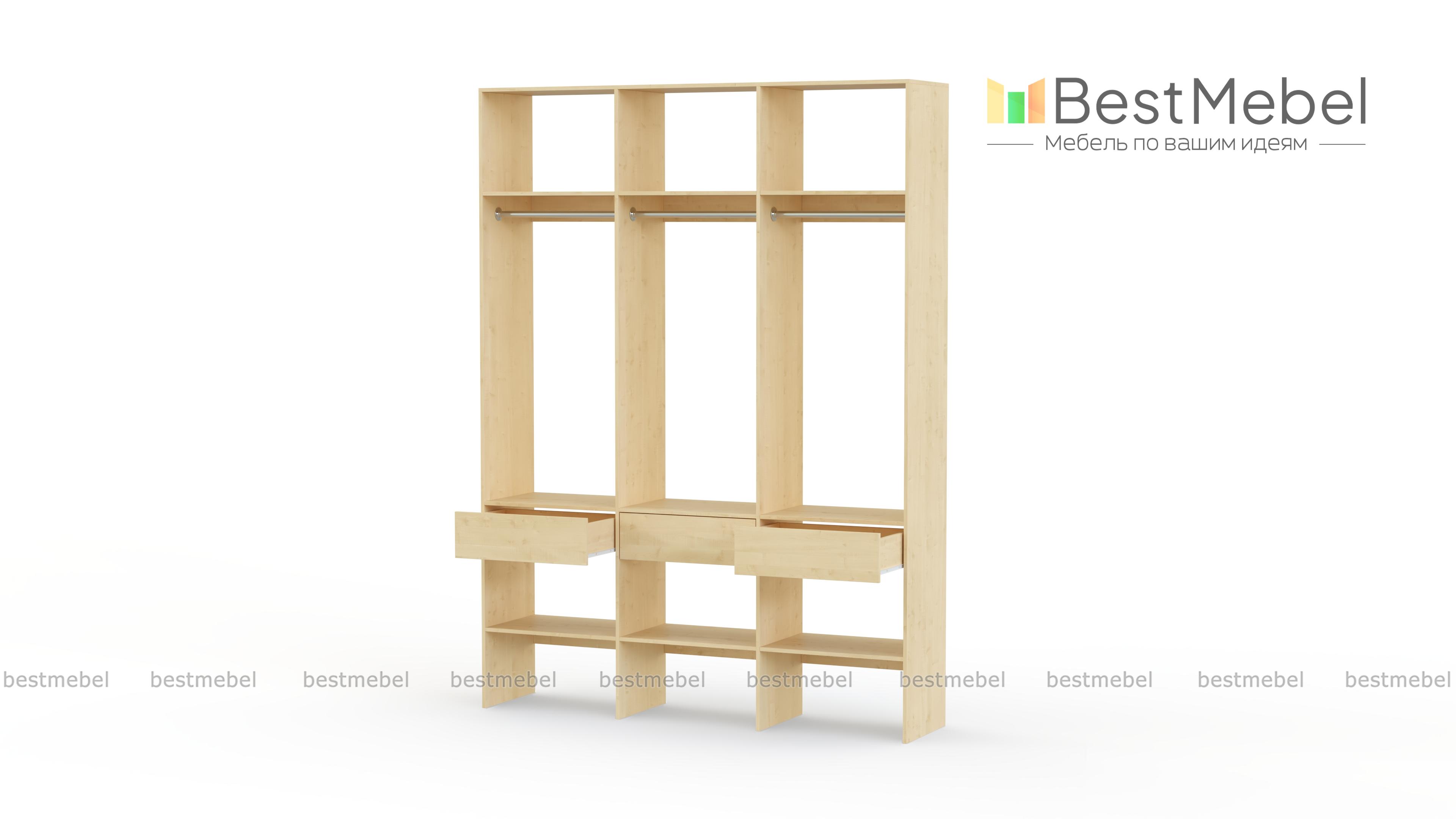 Стеллаж для одежды Мирта 51 BMS — визуально легкая и надежная конструкция из ламинированной ДСП, которую легко вписать в интерьер. Трехсекционный стеллаж прекрасно подходит для современных прихожих и гардеробных. Для вашего удобства три бельевых ящика и обувные полки располагаются снизу, а пространство над штангами занято полками для редко используемых вещей. Купить стеллаж для одежды Мирта 51 BMS вы сможете на сайте нашего интернет-магазина, подобрав цвет и размеры.