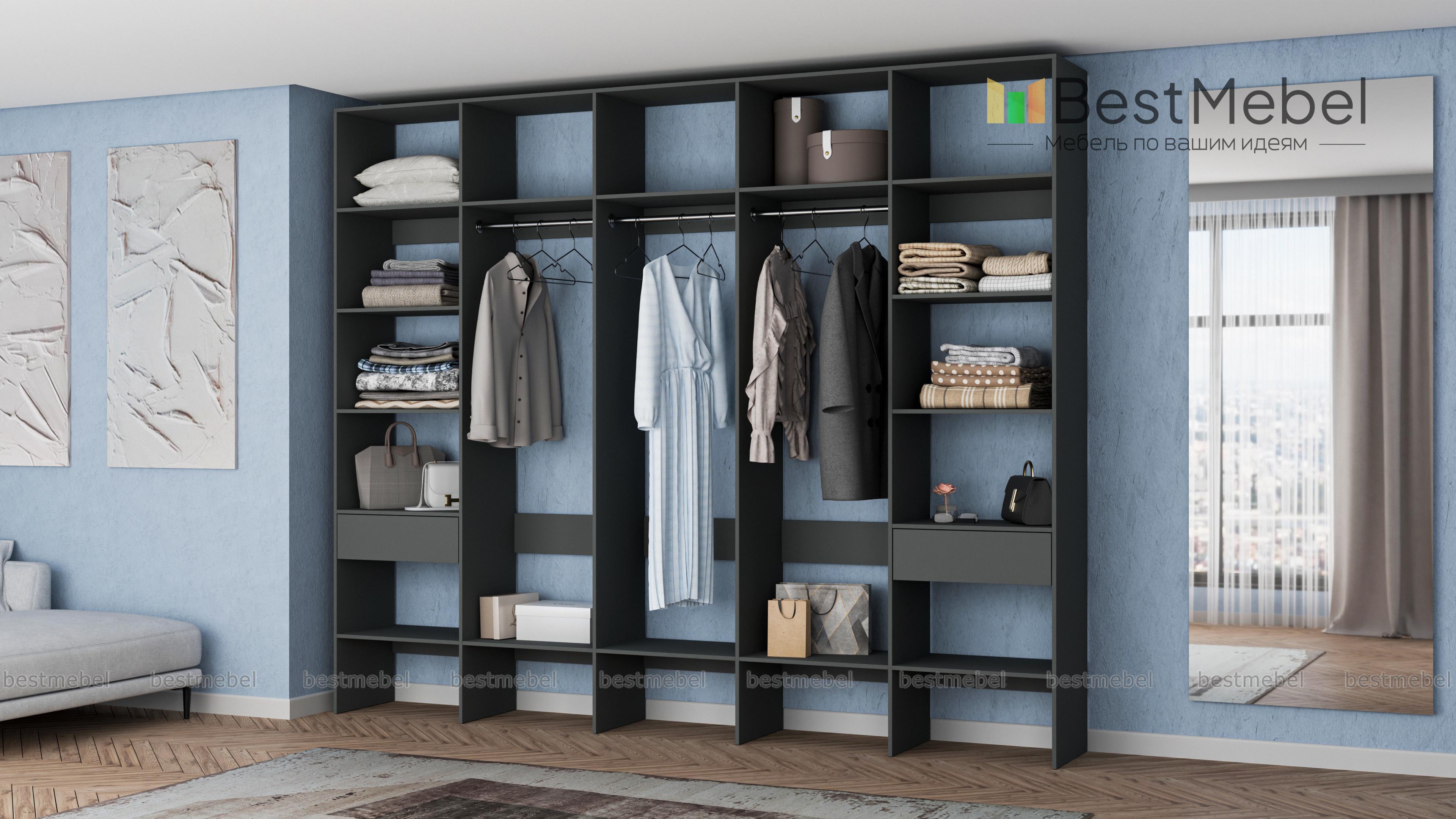 Стеллаж для одежды Мирта 69 BMS — это полноценная система хранения для просторной гардеробной. Три штанги в центре, полки по периметру и два выдвижных отделения обеспечивают быстрый доступ ко всем вещам: от сезонной одежды до мелких аксессуаров и средств ухода. Благодаря универсальному дизайну стеллаж гармонично вписывается в разные по стилю интерьеры. Купить стеллаж для одежды Мирта 69 BMS с индивидуальным подбором цвета и размеров вы сможете на сайте нашего интернет-магазина.