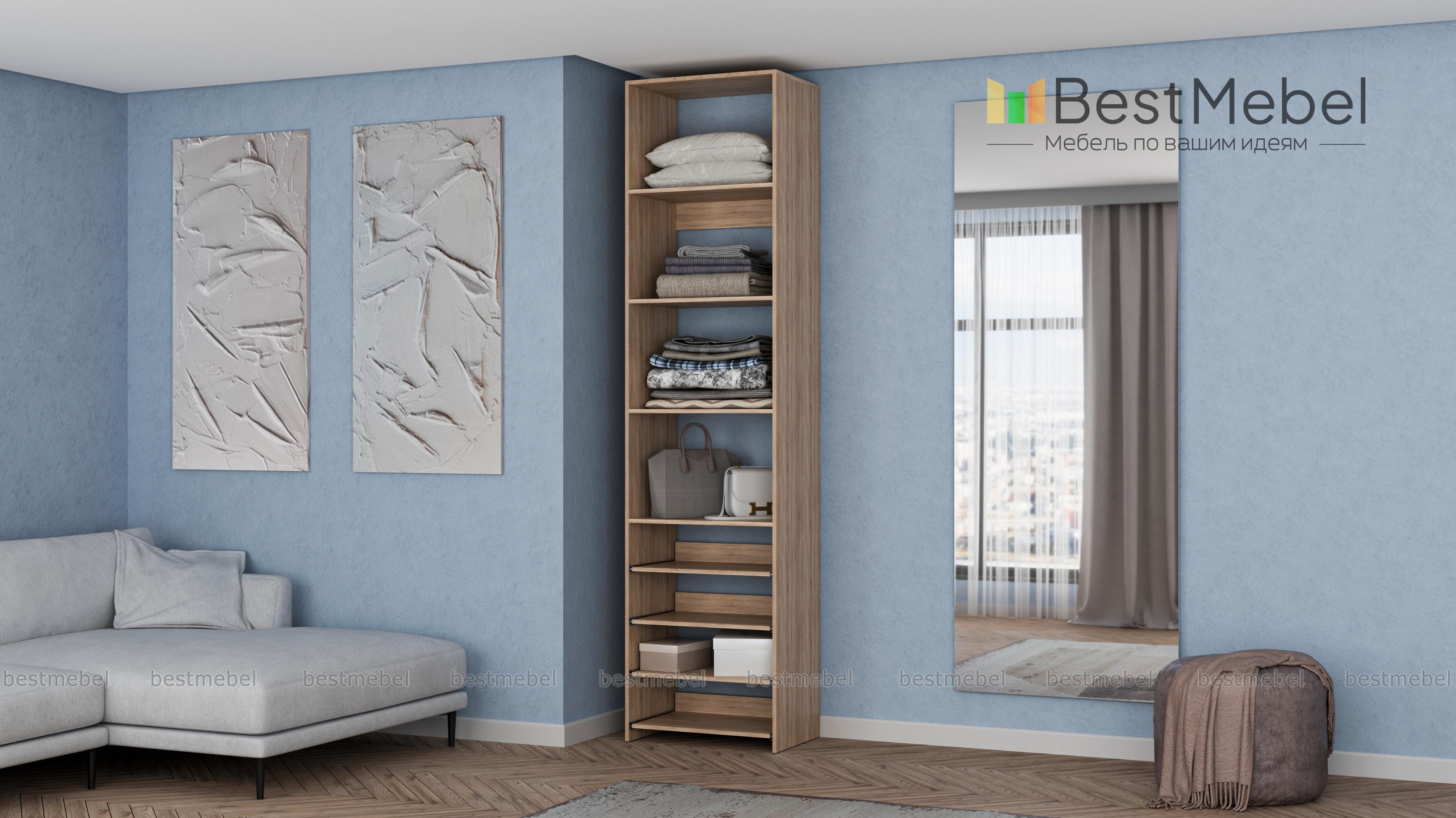 Стеллаж для одежды Мирта 74 BMS прекрасно подходит для небольшого количества вещей. В узком стеллаже, оснащенном четырьмя стандартными и четырьмя выдвижными полками можно хранить сложенную одежду, сезонную обувь и всевозможные аксессуары. Открытая конструкция обеспечивает удобный доступ к содержимому полок и упрощает уборку. Купить стеллаж для одежды Мирта 74 BMS, изготовленный по индивидуальным размерам, можно недорого на сайте нашего интернет-магазина.