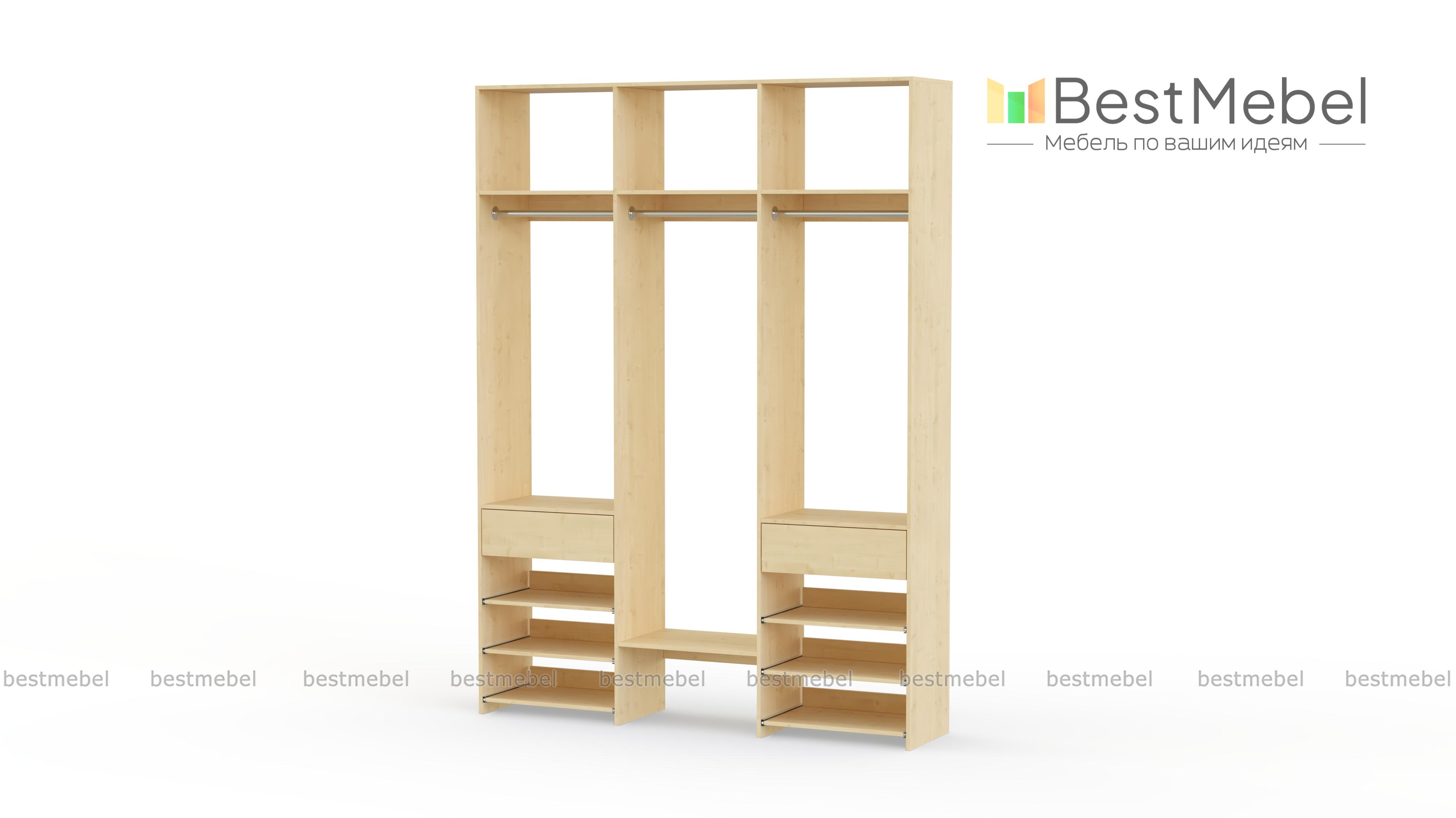 Стеллаж для одежды Мирта 91 BMS позволяет разместить вещи на виду и в легком доступе. Для хранения короткой и длинной одежды на вешалках, сложенных вещей, мелкого трикотажа и обуви идеально подходит комбинация из трех штанг, верхних полок, выдвижных панелей и пары ящиков. Стеллаж из ламинированной ДСП с древесным рисунком прочный и эстетичный, при этом доступный по цене. Купить стеллаж для одежды Мирта 91 BMS в любом оттенке из каталога и нужном размере приглашаем к нам в интернет-магазин.