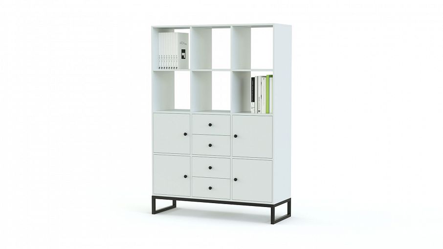 Стеллаж Мартина 19 BMS можно разместить рядом с рабочим столом или в зоне отдыха. Лаконичная модель с высокими металлическими опорами, которые оставляют свободное место для уборки, выполнена в стилистике лофта. Шесть открытых полок, четыре отделения с распашными дверцами и четыре выдвижных ящика, оборудованных миниатюрными круглыми ручками, - все, что необходимо для хранения книг и документов, полезных мелочей и принадлежностей для творчества. Купить стеллаж Мартина 19 BMS приглашаем в наш интернет-магазин.