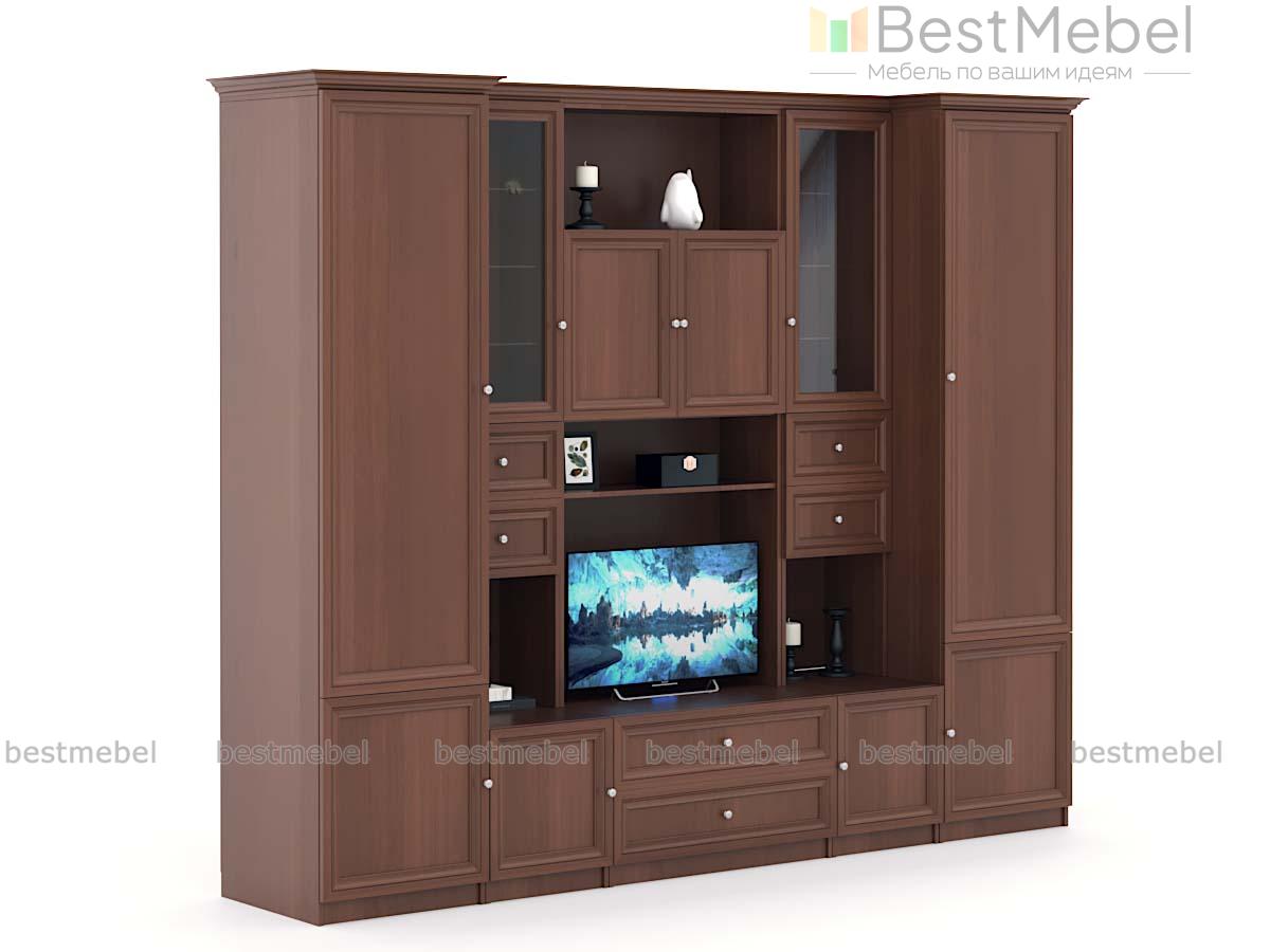 Стенка Софи МДФ BMS – это не только эффектная стенка в классическом стиле, но и продуманная система хранения для книг, аксессуаров и предметов гардероба. Благодаря вместительным нишам найдется место аппаратуре, а на открытых полках и изящных витринах будут выгодно смотреться интерьерные украшения. В комплекте два комбинированных пенала, распашные отделения и выдвижные ящики. Фасады с имитацией текстуры дерева декорированы рамками и изящной фурнитурой. Купить стенку Софи МДФ BMS недорого приглашаем в наш интернет-магазин.