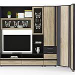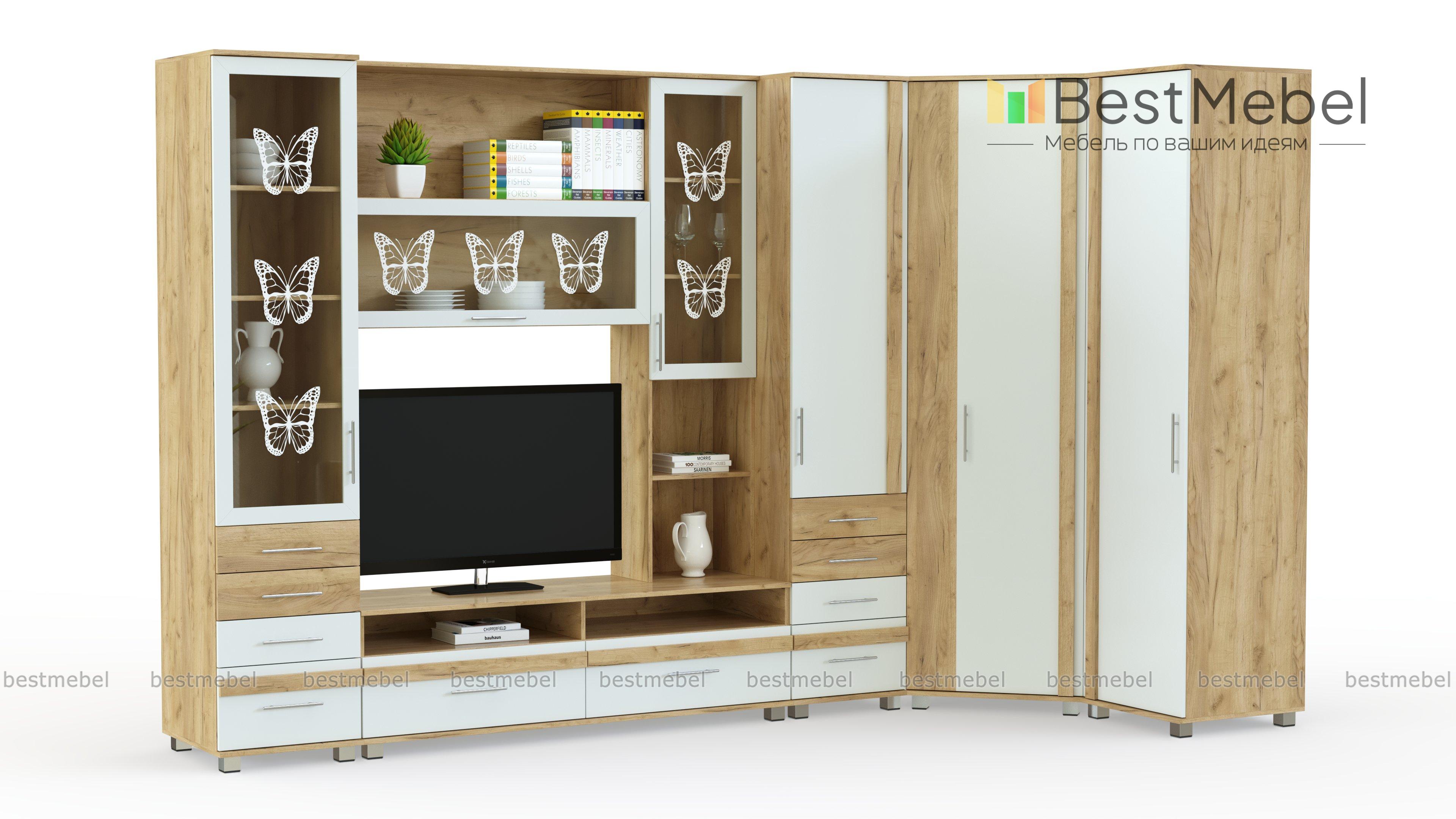 Элегантная стенка Каролина Композиция 4 BMS, состоящая из нескольких модулей, сделает интерьер современной гостиной не только стильным, но и функциональным. Вместительные шкафы для одежды имеют угловую, удобную в размещении, конструкцию, для ТВ предусмотрена просторная тумба, а для мелочей, книг и предметов декора – разнообразные открытые и застекленные полки. Модель выполнена в контрастном сочетании цветов, а особую индивидуальность ей придает оригинальный узор на стеклах.