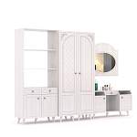 Стенка Софья 3К BMS – универсальное решение для меблировки гостиной или спального интерьера. Модульная композиция включает в себя распашной шкаф для одежды, комбинированный книжный шкаф, двухтумбовый туалетный столик с эргономичным вырезом столешницы и навесное панно с овальным зеркалом. Выполненная в белом цвете и декорированная по фасаду фрезеровкой ромбами, стенка смотрится легкой и визуально расширит границы комнаты. Купить стенку Софья 3К BMS по выгодной цене приглашаем к нам в интернет-магазин.