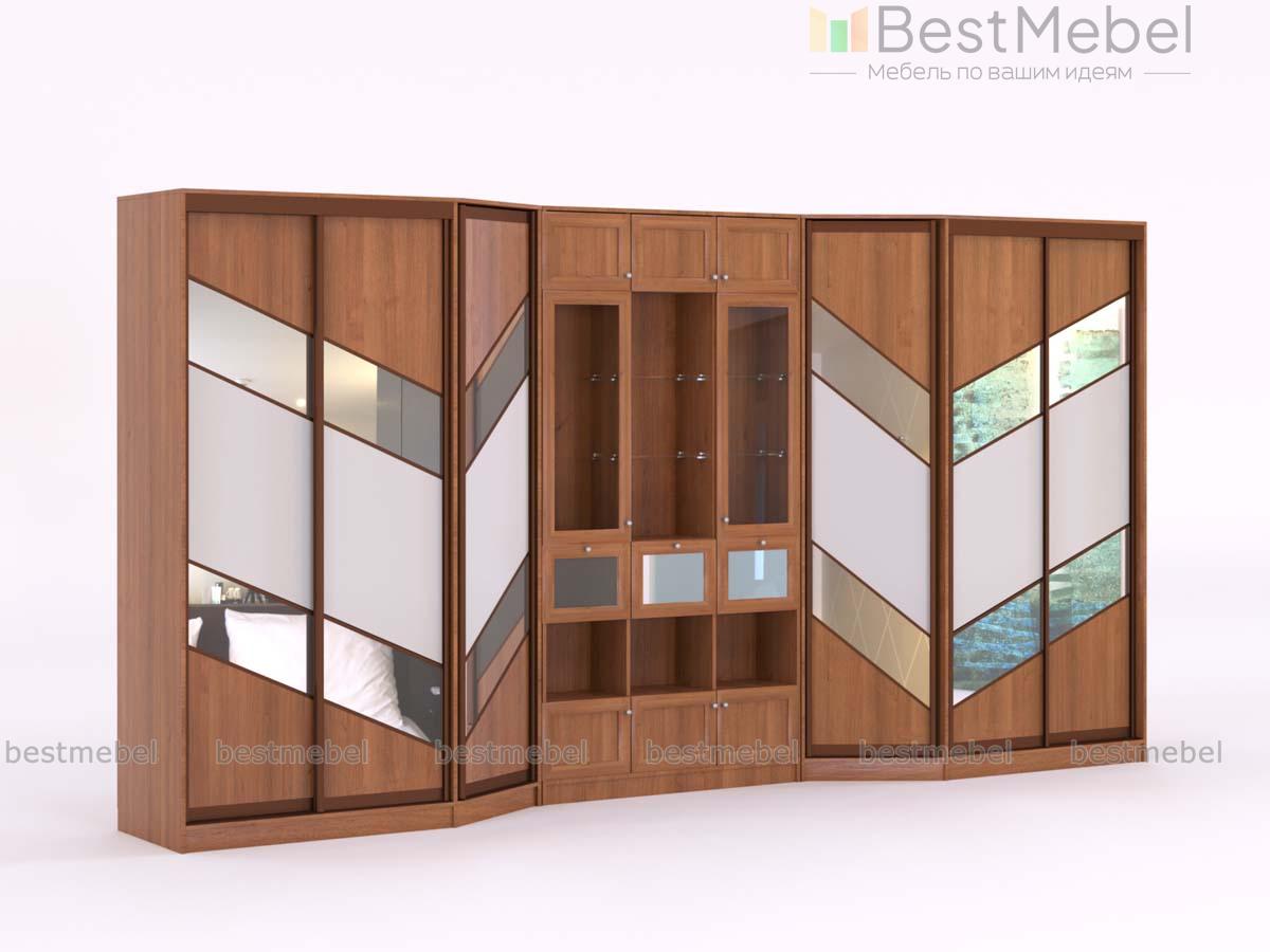 Стенка в гостиную Локи 73 BMS привлекает внимание оригинальным геометричным дизайном и формой фасада. Крупногабаритная модель характеризуется отличной вместительностью и позволит сэкономить на лишней мебели. В центре композиции располагается утопленная секция с глухими распашными отделениями, витринами и нишей, а по бокам – шкафы-купе, скошенные секции и торцевые радиусные полки для книг и предметов декора. Выполненная в теплых древесных тонах, стенка декорирована зеркальными вставками. Купить стенку в гостиную Локи 73 BMS вы сможете в нашем интернет-магазине.