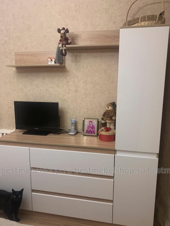 Отличная стенка , удобные выдвижные ящики. Смотрится симпатично, стоит недорого. Всем нравится.