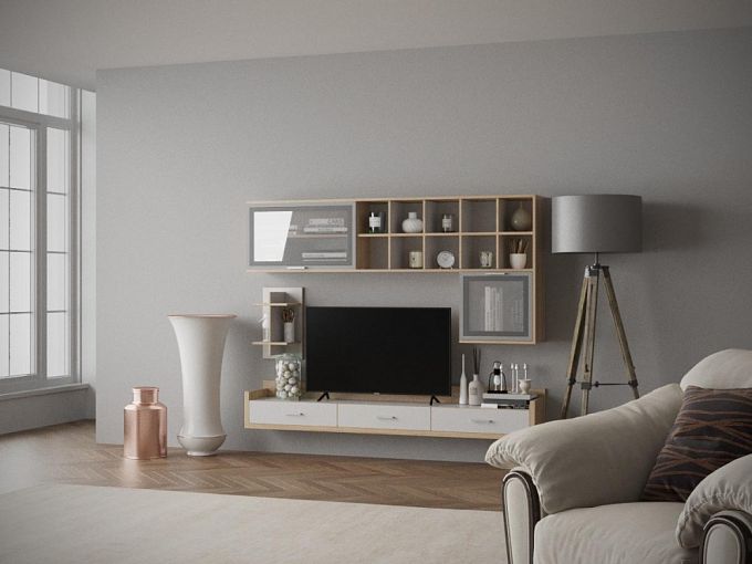 Гостиная Тиса-213 BMS – компактная и недорогая подвесная конструкция для современного интерьера. Входящие в комплект модули вы сможете расположить на любой удобной высоте и эстетично оформить зону размещения ТВ. В комплект входят широкая полка с тремя выдвижными ящиками и защитными бортиками по бокам, витрины и открытые полки, разделенные на секции. Обработка срезов кромкой обеспечит гостиной долговечность. Купить гостиную Тиса-213 BMS вы сможете в нашем интернет-магазине, подобрав оптимальные параметры.