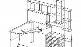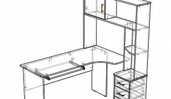 Угловой компьютерный стол Флеш 34 с полками BMS
