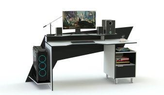 Геймерский стол Мустанг-6 BMS – это нестандартный яркий дизайн и продуманный функционал. Широкая прямая модель с асимметрично вырезанной задней панелью выполнена в бело-черной гамме и займет центральное положение в интерьере. Эргономичная столешница дополнена надстройкой под монитор и периферийные устройства, а по бокам от рабочего места располагаются ниша для системного блока и тумба с открытой секцией и выдвижным ящиком. Купить геймерский стол Мустанг-6 BMS по выгодной цене вы сможете на сайте нашего интернет-магазина.