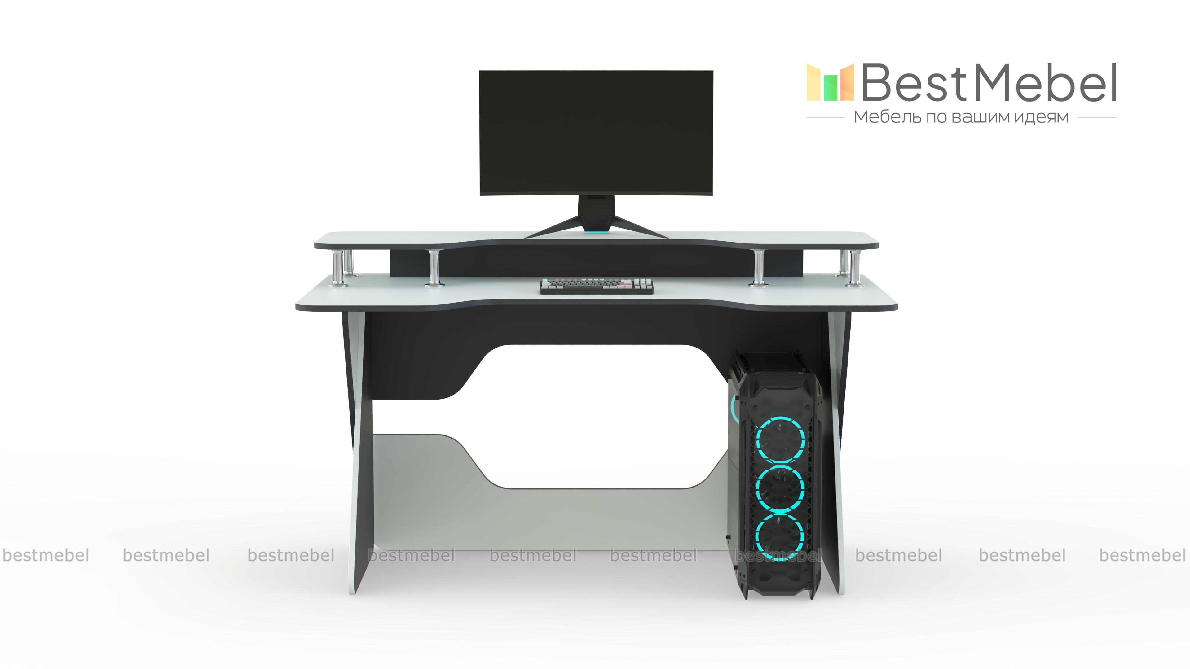 Геймерский стол Стелл 4 BMS отлично впишется в современные интерьеры благодаря яркому футуристичному дизайну. Модель в сочетании синего оттенка и белого располагается на регулируемых опорах и оборудована надстройкой для удобного размещения монитора и периферийных устройств. Занять комфортное положение во время игры помогут эргономичные вырезы столешницы и задней стенки. Купить геймерский стол Стелл 4 BMS с возможностью изготовления по индивидуальным размерам приглашаем в наш интернет-магазин.