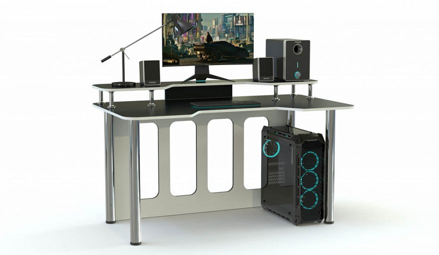 Игровой стол Персей тип 1 BMS, выполненный в черно-белой гамме, отличается креативным и функциональным дизайном. Просторная столешница имеет эргономичный вырез в передней части и дополнена надстройкой для размещения монитора и периферийных устройств. Устойчивость и внешнюю легкость придают конструкции регулируемые хромированные опоры и задняя стенка с декоративными вырезами. Купить игровой стол Персей тип 1 BMS приглашаем в наш интернет-магазин с выбором цвета по каталогу.
