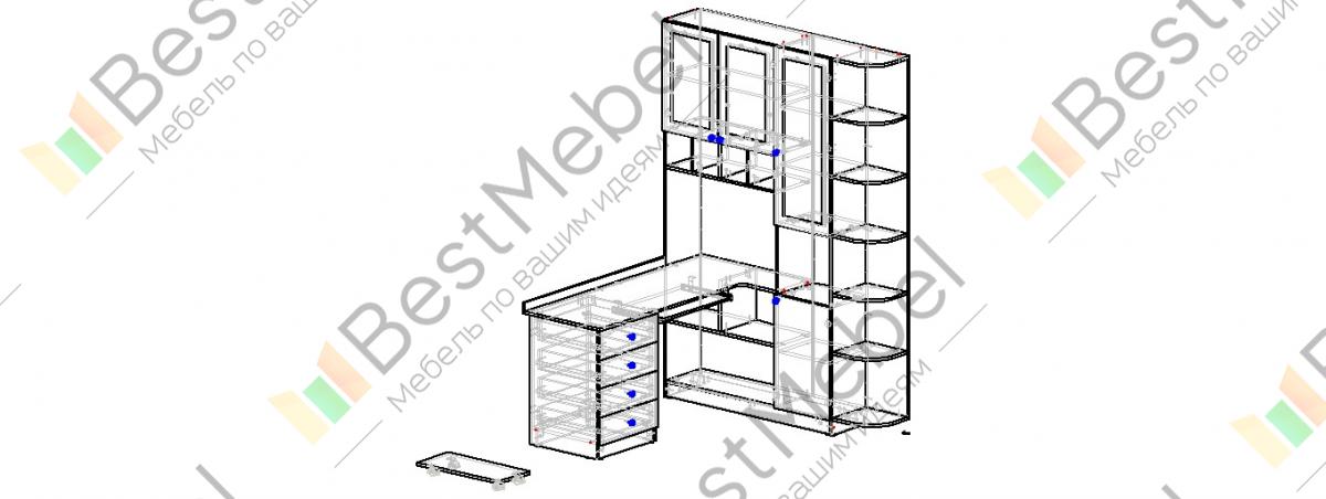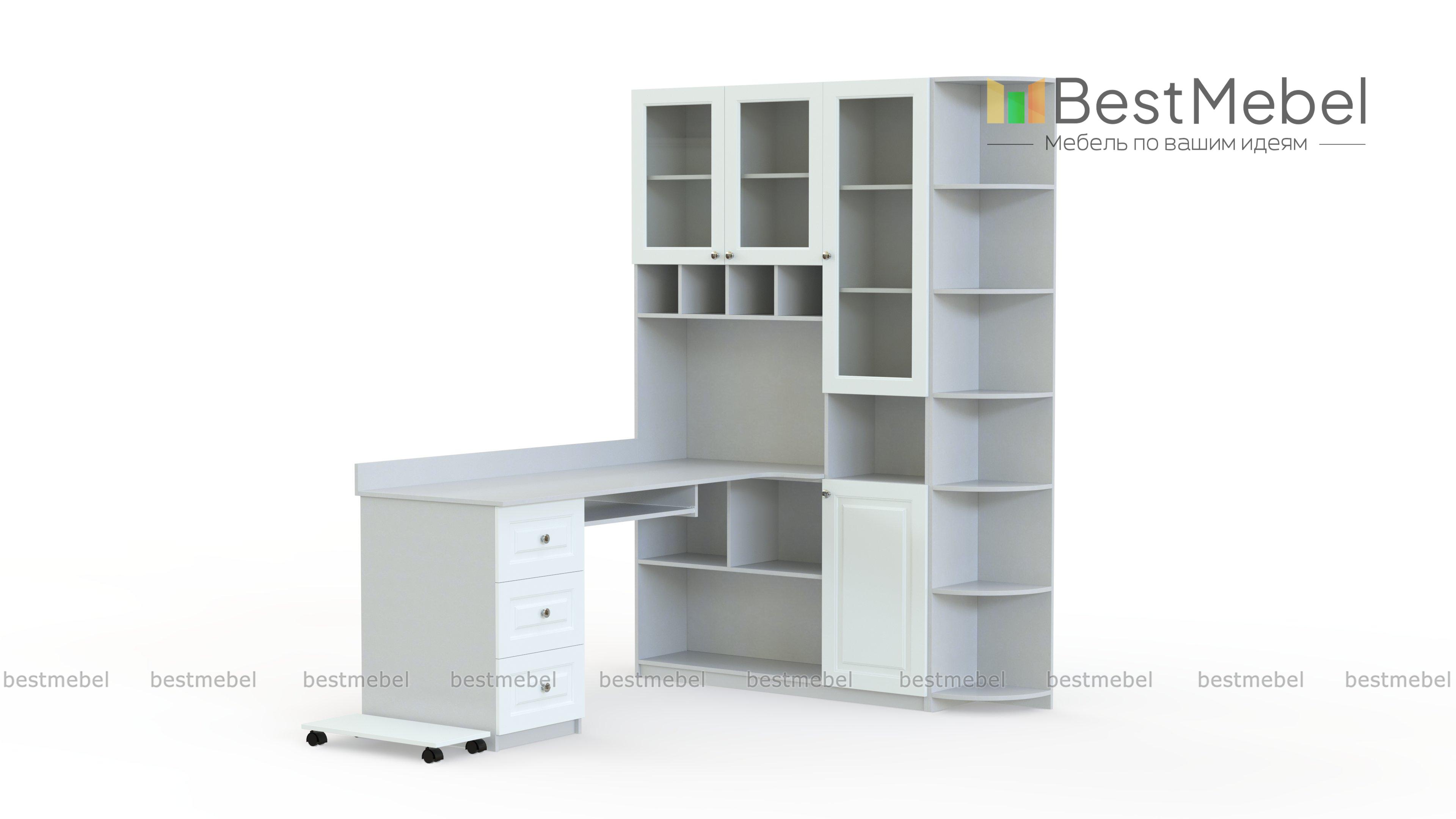 Компьютерный стол Классик 13 BMS сочетает в себе классическую элегантность с современным функционалом. Практичная угловая модель объединила просторную столешницу с выдвижной панелью под клавиатуру и тумбу для хранения мелочей, книжный шкаф, оборудованный открытыми и застекленными полками, и торцевой радиусный стеллаж. Корпус насыщенного древесного оттенка венге скомбинирован с белоснежными фрезерованными фасадами. Купить компьютерный стол Классик 13 BMS приглашаем к нам в интернет-магазин.