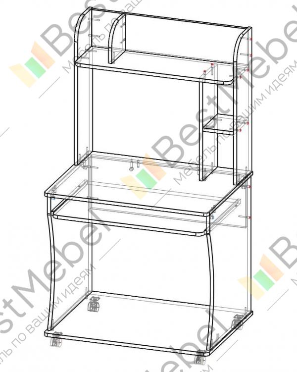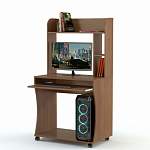 Небольшая модель создана для малогабаритных помещений и предназначена для работы за компьютером. Она оснащена колесиками, что позволяет легко перемещать столик. Здесь нет ничего лишнего и все строго функционально: тумба под системный блок, выдвижная полочка для клавиатуры, столешница для монитора с отрытой полкой для дисков, размещения колонок и т.д. Купить такую модель можно для небольшой гостиной, детской или для маленького кабинета. При заказе параметры можно изменить.
