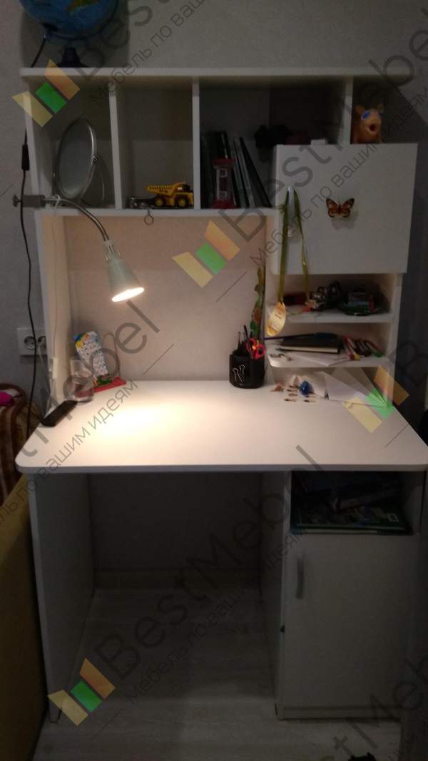 Стол отлично подходит для школьника. Нужное количество полок над головой, удобный шкафчик с дверкой. Само качество стола - на отлично. Никаких сколов, царапин.. Изготовили по нашим размерам - и это главный плюс данного магазина, при этом цена, как за индивидуальный заказ, не возрастает до небес. Само изготовление стола и доставка - все в пределах оговоренных сроков. Собирали сами, все просто и понятно. Будем обращаться еще к данному магазину при выборе мебели.