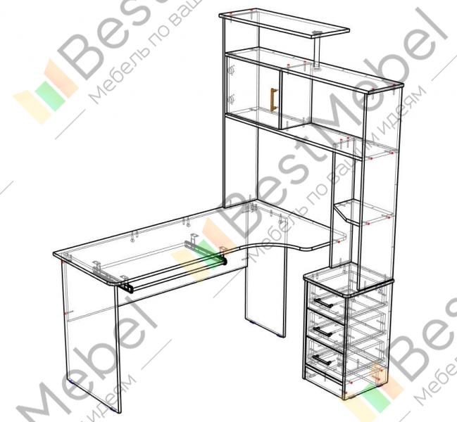 Представляем Вашему вниманию превосходный угловой стол – «Прометей». Как и мифический титан принес искру людям, стол придаст Вашему кабинету особенный стиль, подчеркнет статус и престиж. Модель состоит из самого стола с выдвижной панелью для клавиатуры, а также стеллажа с множеством полок, ящиков и отделений для техники, документов, книг, канцелярских принадлежностей и разнообразных личных предметов. Подберите подходящее цветовое решение и закажите стол у нас на сайте за считанные минуты.