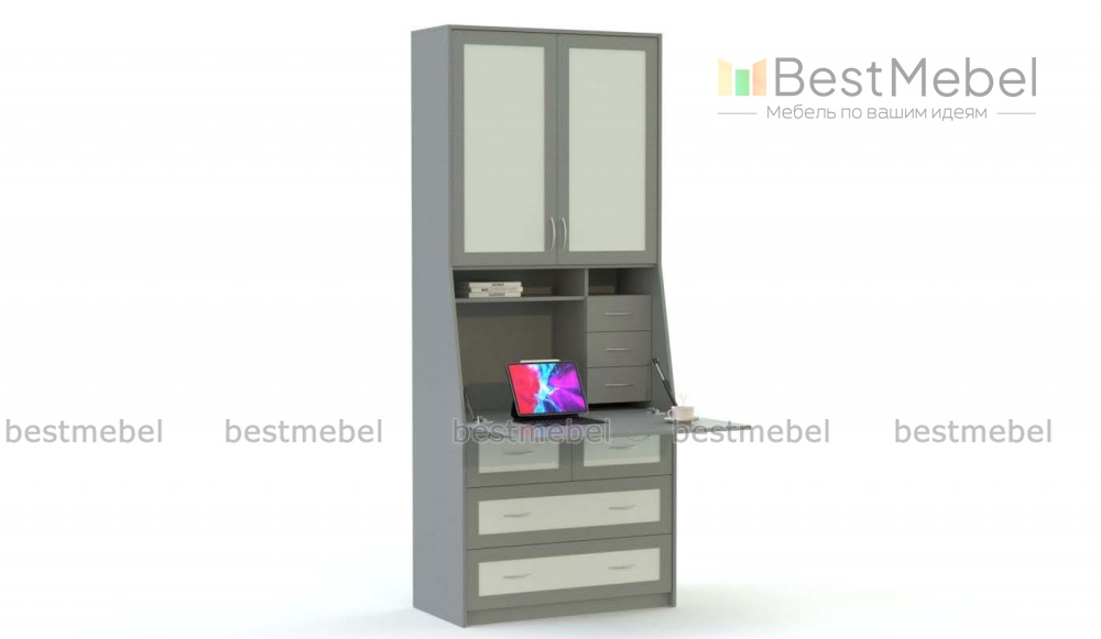 Компьютерный стол-трансформер Фимона 1 BMS – это элегантный секретер для тех, кто предпочитает классические решения. Высокая модель с рамочными фасадами выполнена в универсальных серо-белых тонах и оборудована удобной системой хранения из распашного отделения с полками и четырех выдвижных ящиков. За откидной столешницей в центральной части скрыты ниши и ящички для мелочей. Купить компьютерный стол-трансформер Фимона 1 BMS для работы или учебы вы сможете в нашем интернет-магазине.