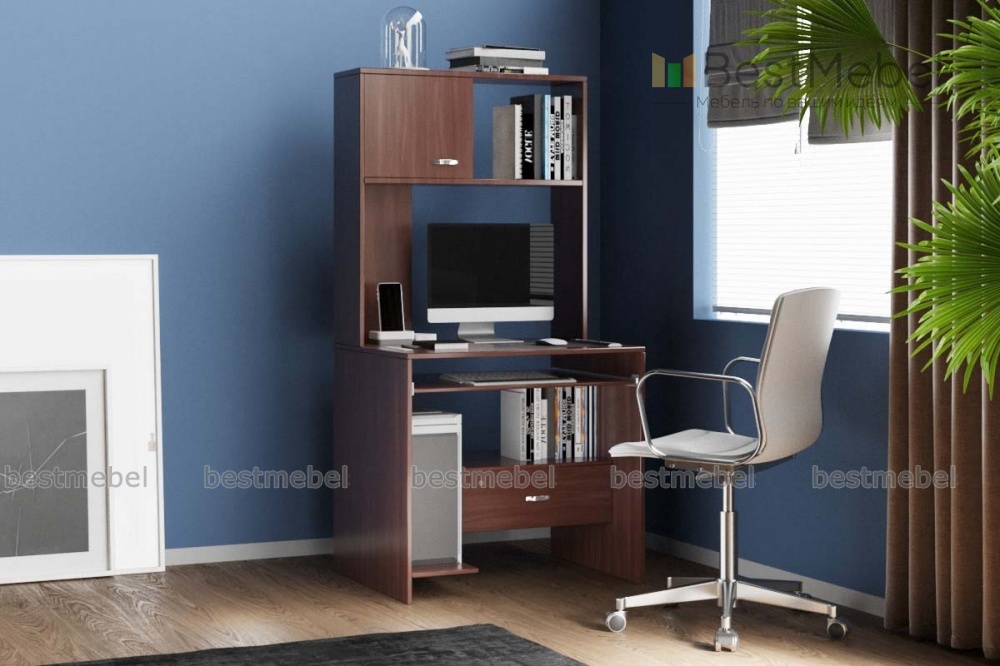 Компьютерный стол НСС 13 BMS с прямой столешницей. На поверхности удобно устанавливать монитор или ноутбук. Также имеется место для дисков и других мелочей. Для клавиатуры имеется выдвижная полочка, что удобно при работе. Компьютерный стол комплектуется надстройкой, где можно хранить папки, книги или канцелярские принадлежности. В наличии ниша для системного блока и принтера. Конструкция стола компактна. Модель можно заказать у нас на сайте.